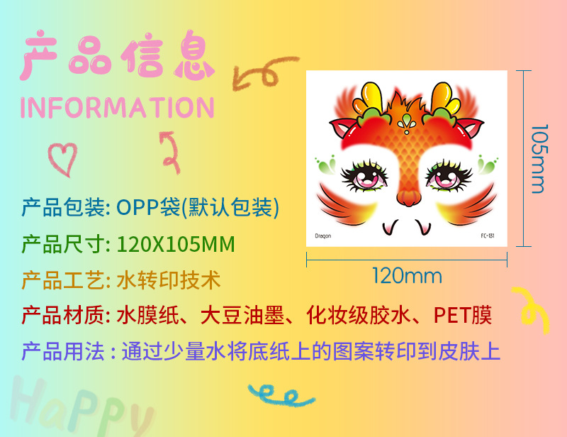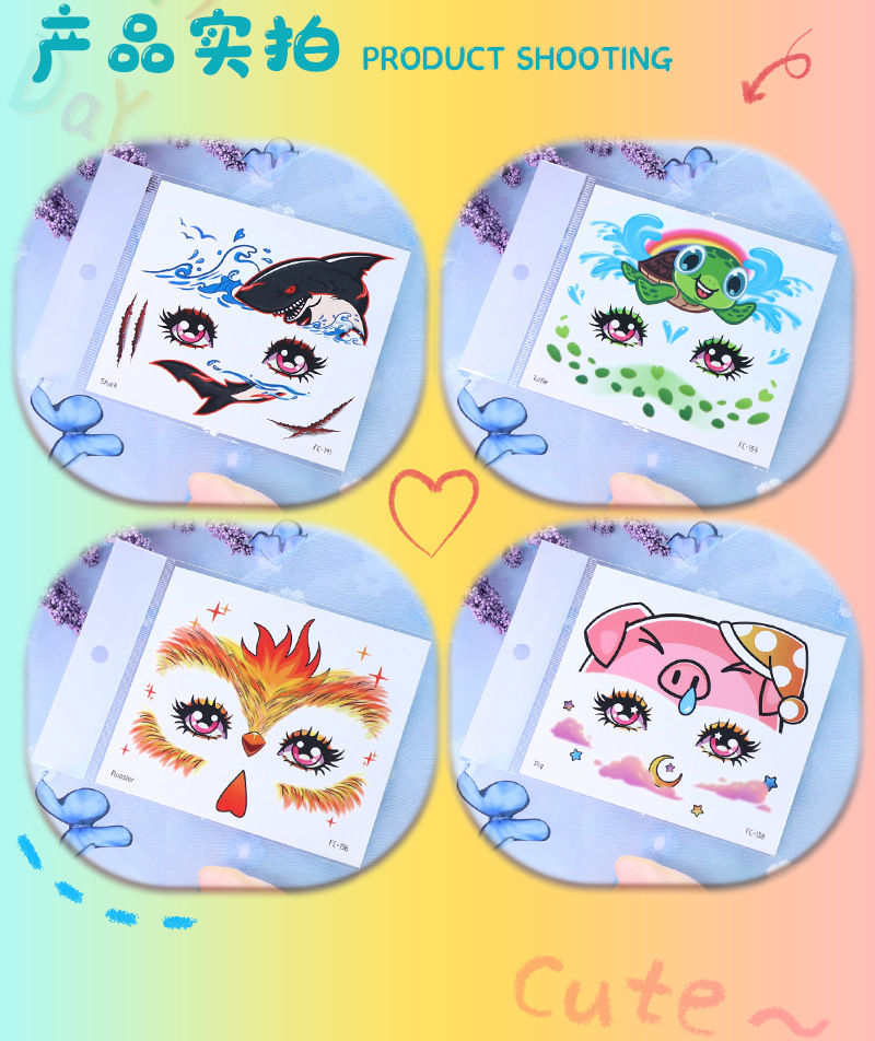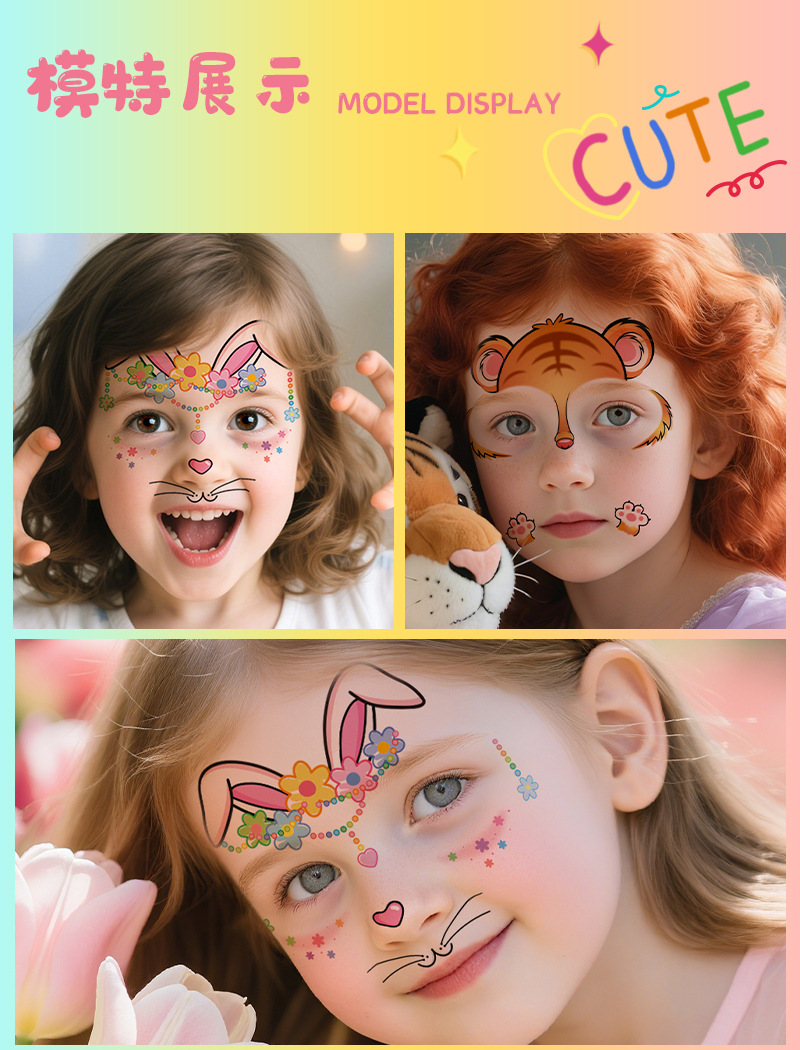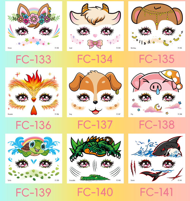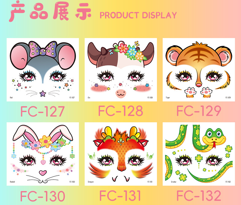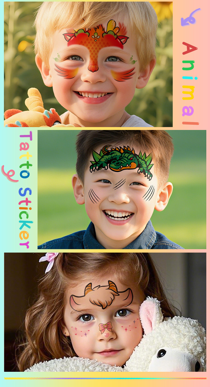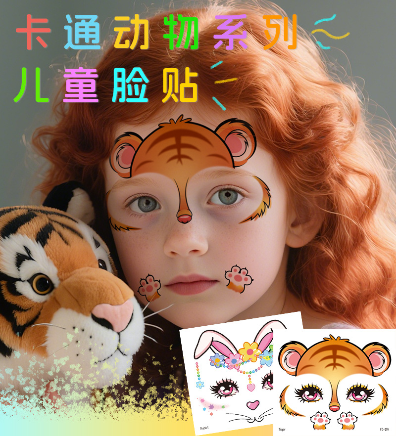 跨境新款卡通儿童彩绘脸部贴纸纹身贴十二生肖防水派对妆容脸贴