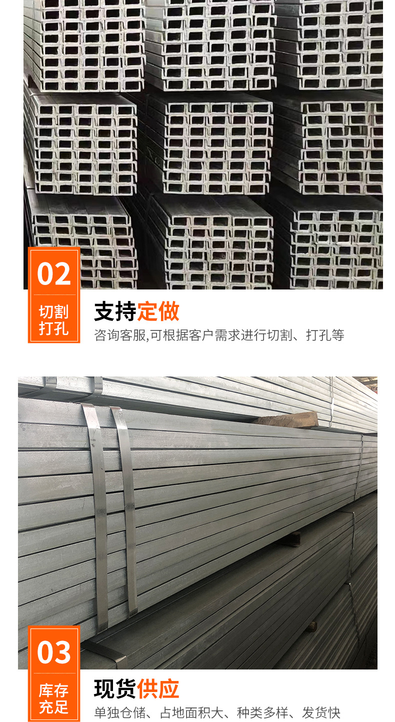 工地用热镀锌C型钢桥梁叉车用热轧槽钢幕墙建筑幕墙钢结构槽钢