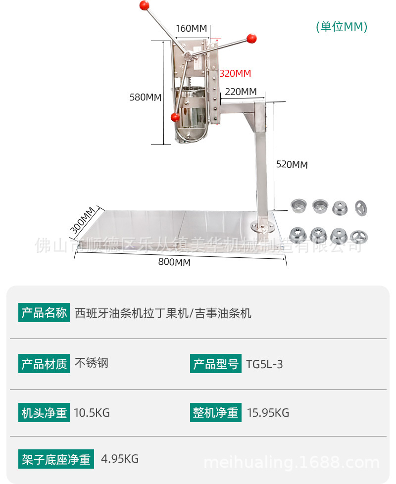 - 规格:TG5L-3西班牙油条机拉丁果机吉事油条机