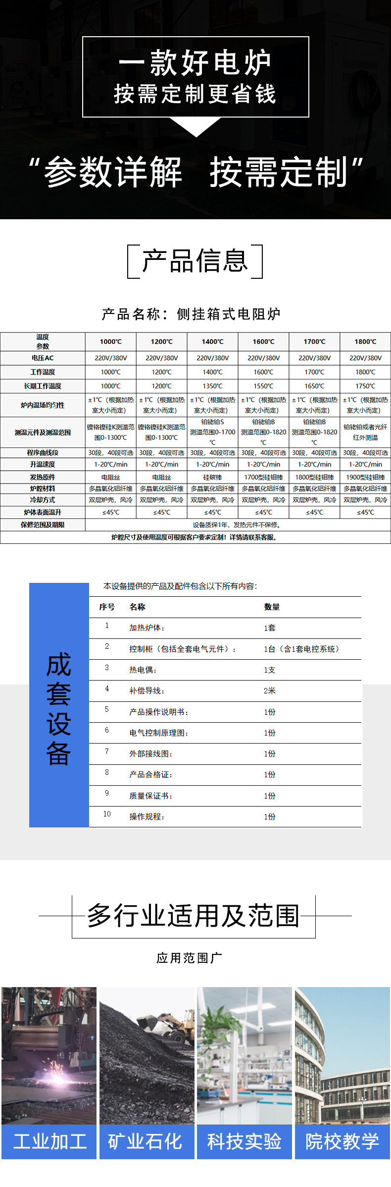- 应用场景:淬火、退火、回火、排胶等热处理加热用,还可作金属、陶瓷的烧结、溶解、分析等
