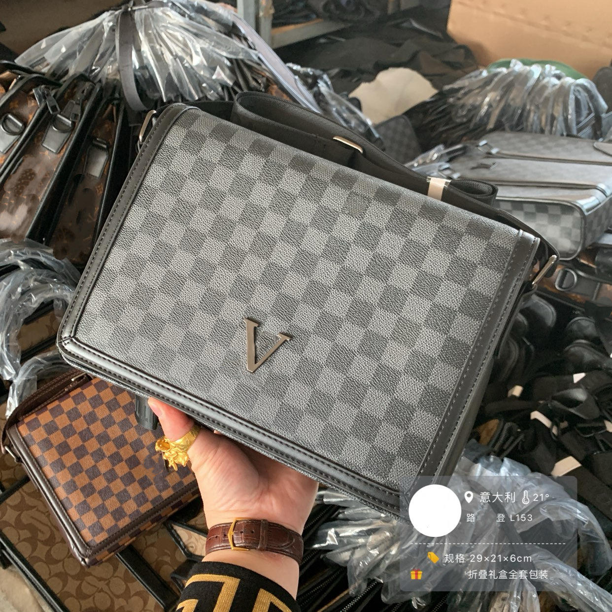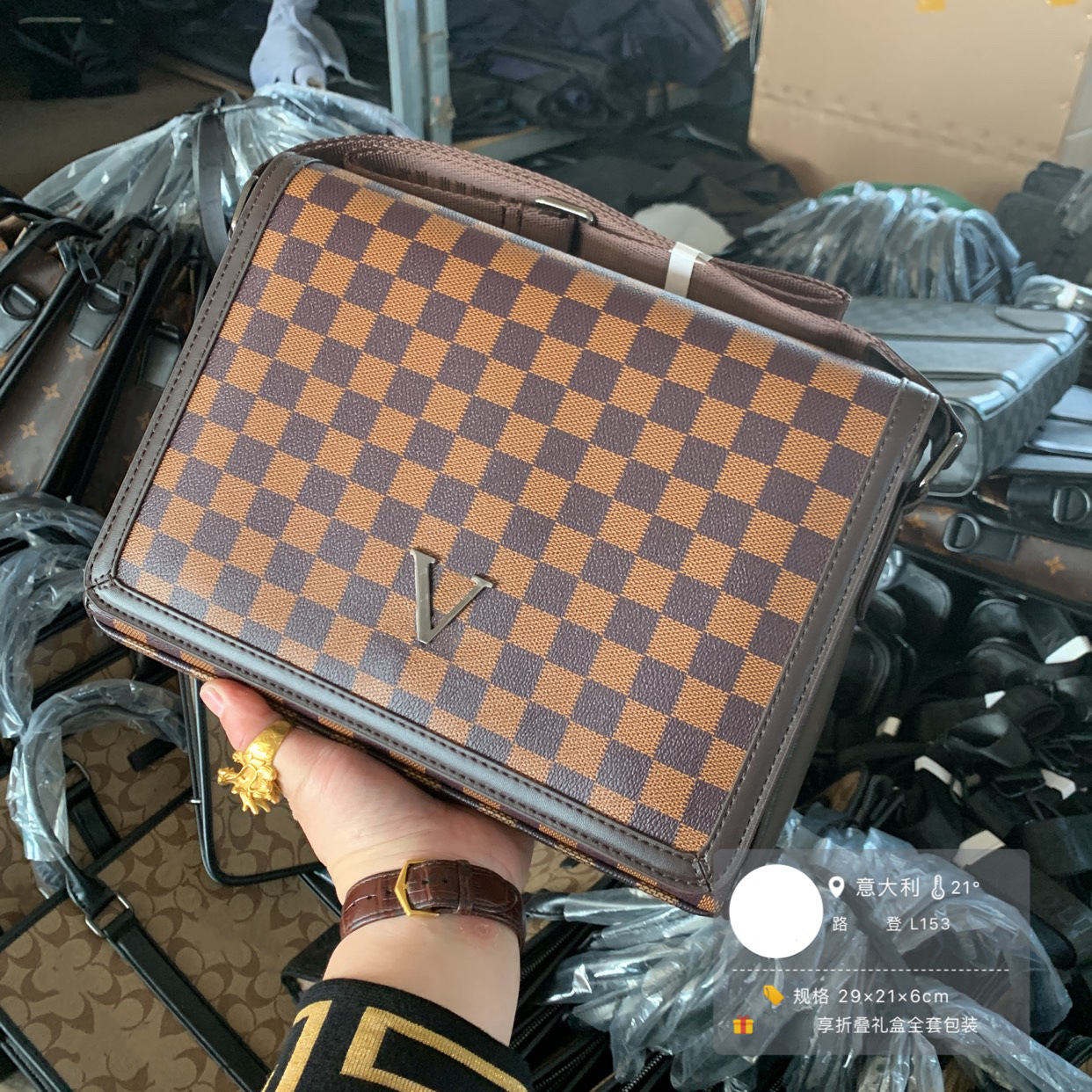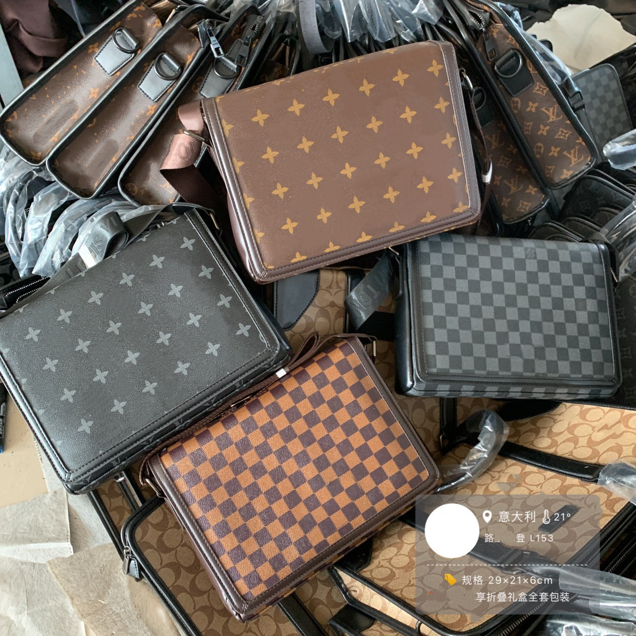跨境男士包驴家格子单肩包皮质翻盖男款横斜跨包文件奥莱包ipad包