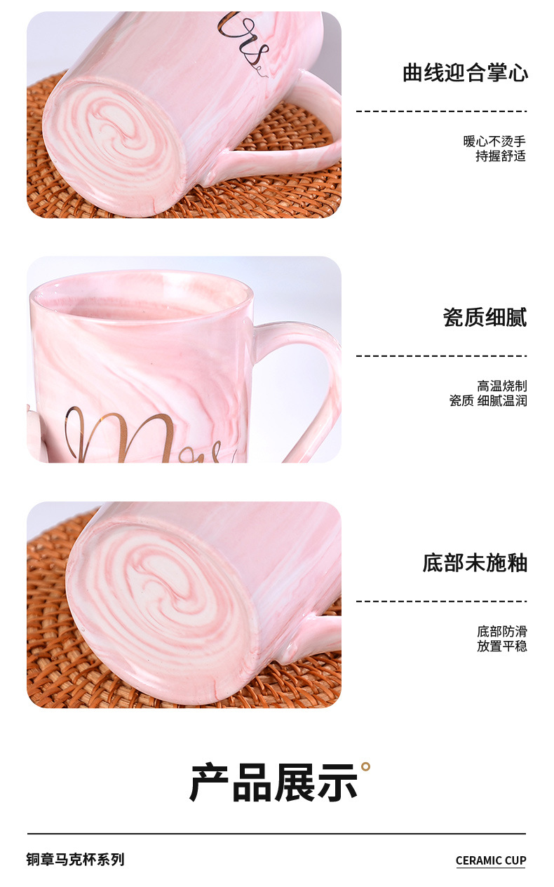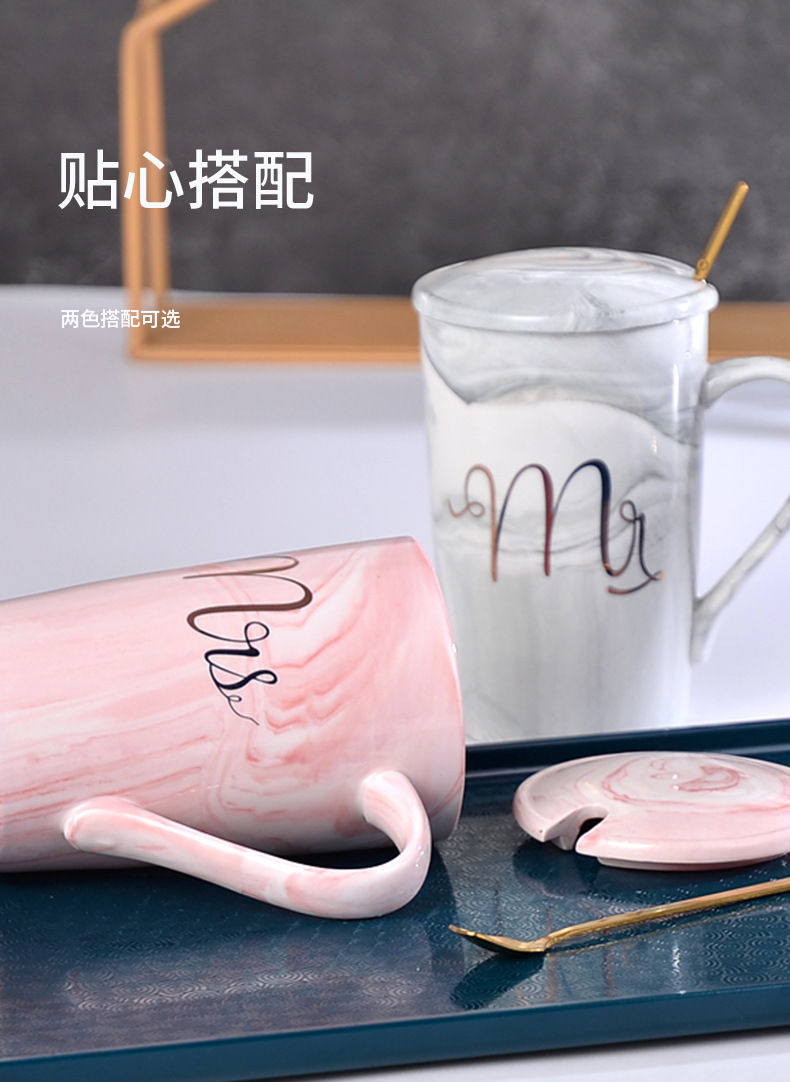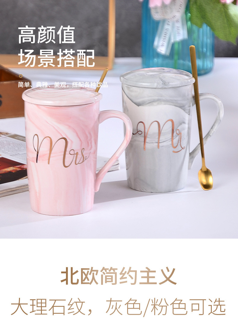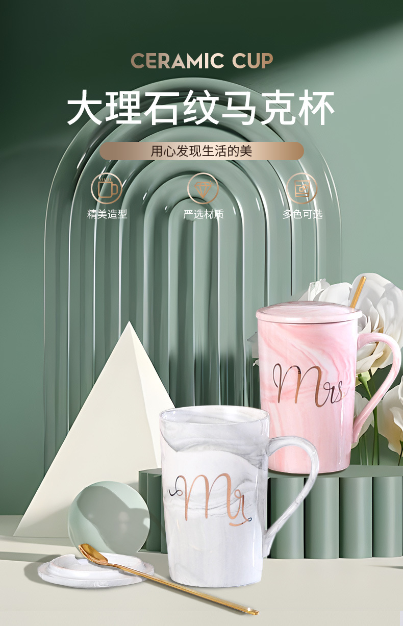 大理石纹杯轻奢陶瓷马克杯婚礼伴手礼跨境礼品带盖描金水杯印字