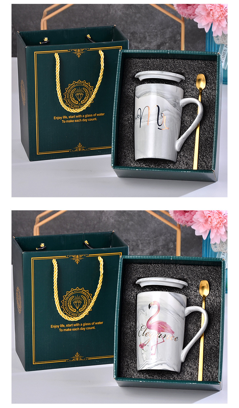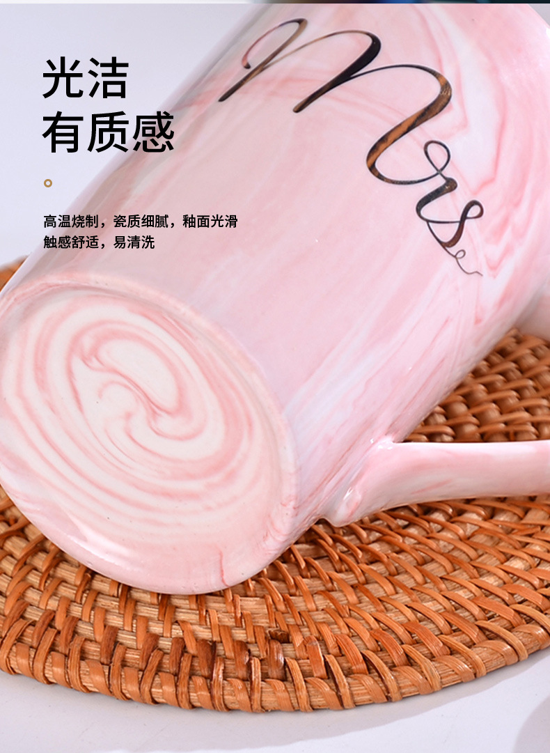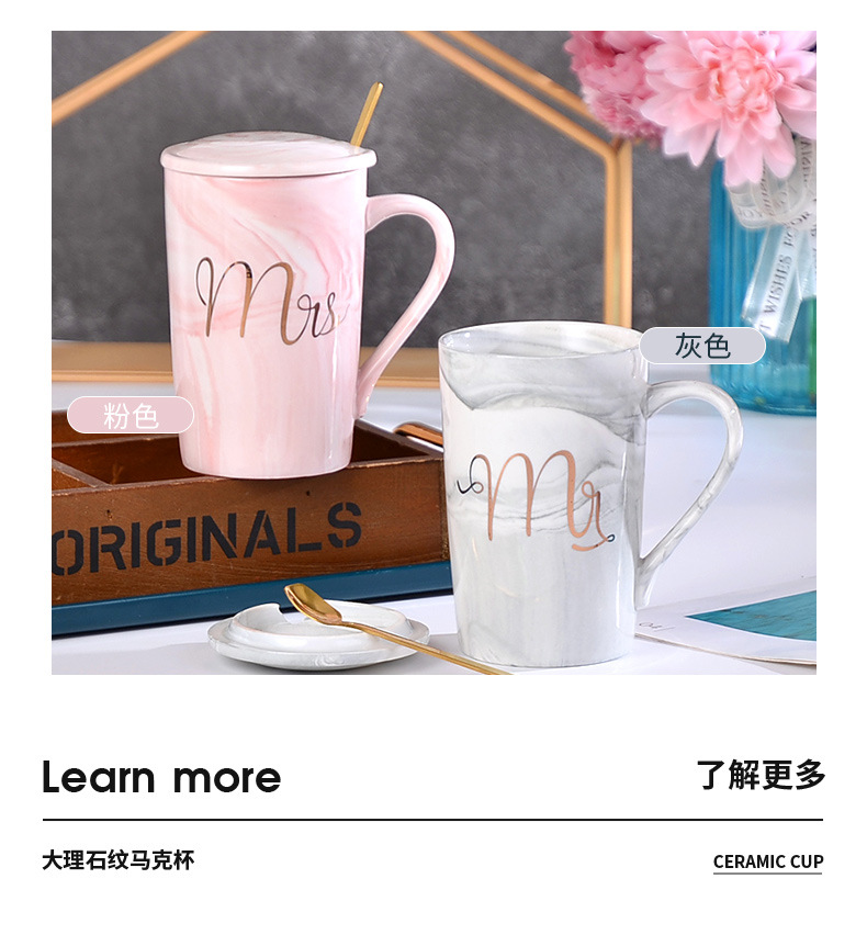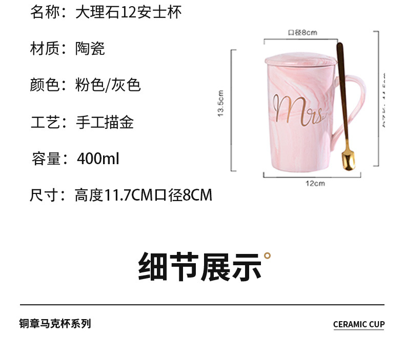 大理石纹杯轻奢陶瓷马克杯婚礼伴手礼跨境礼品带盖描金水杯印字