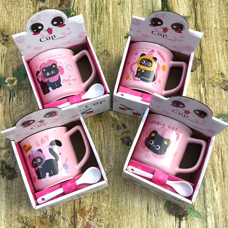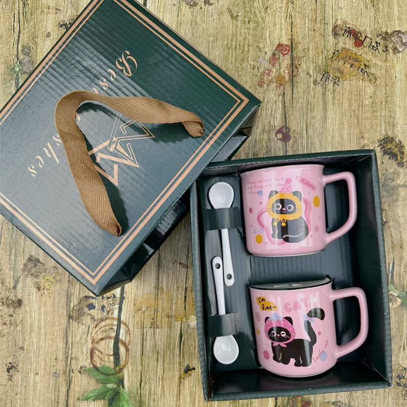 高颜值情侣对杯猫咪可爱陶瓷马克杯带勺男女生儿童通用牛奶水杯
