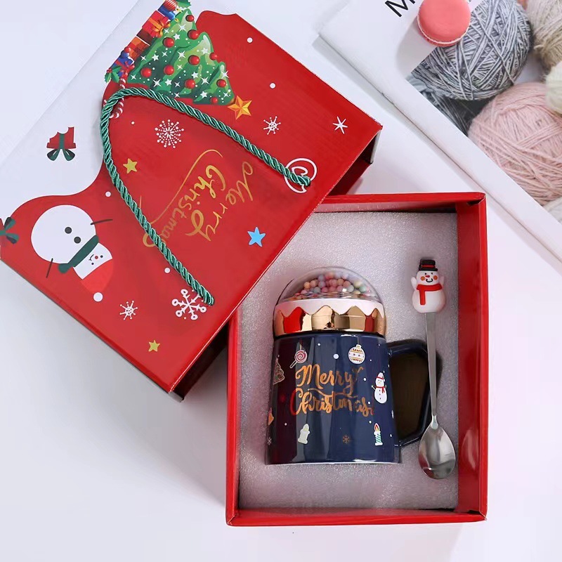 新年礼物陶瓷杯圣诞老人杯带盖牛奶咖啡杯饮水圣诞杯厂家直销批发
