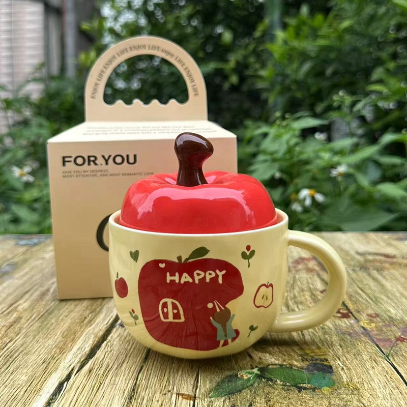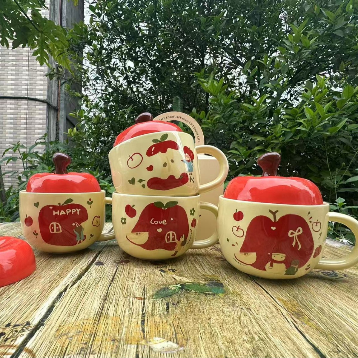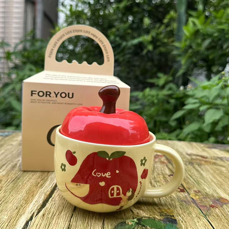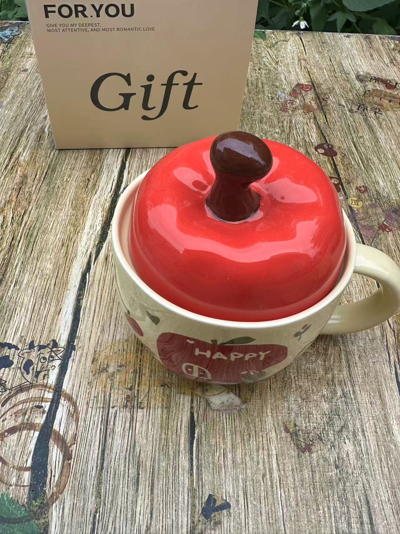 耐高温圣诞苹果杯子马克杯带盖陶瓷儿童水杯女生生日礼物毕业礼品