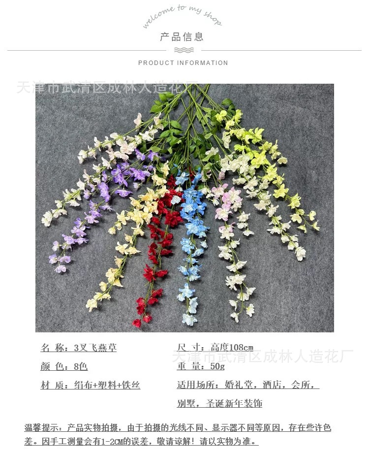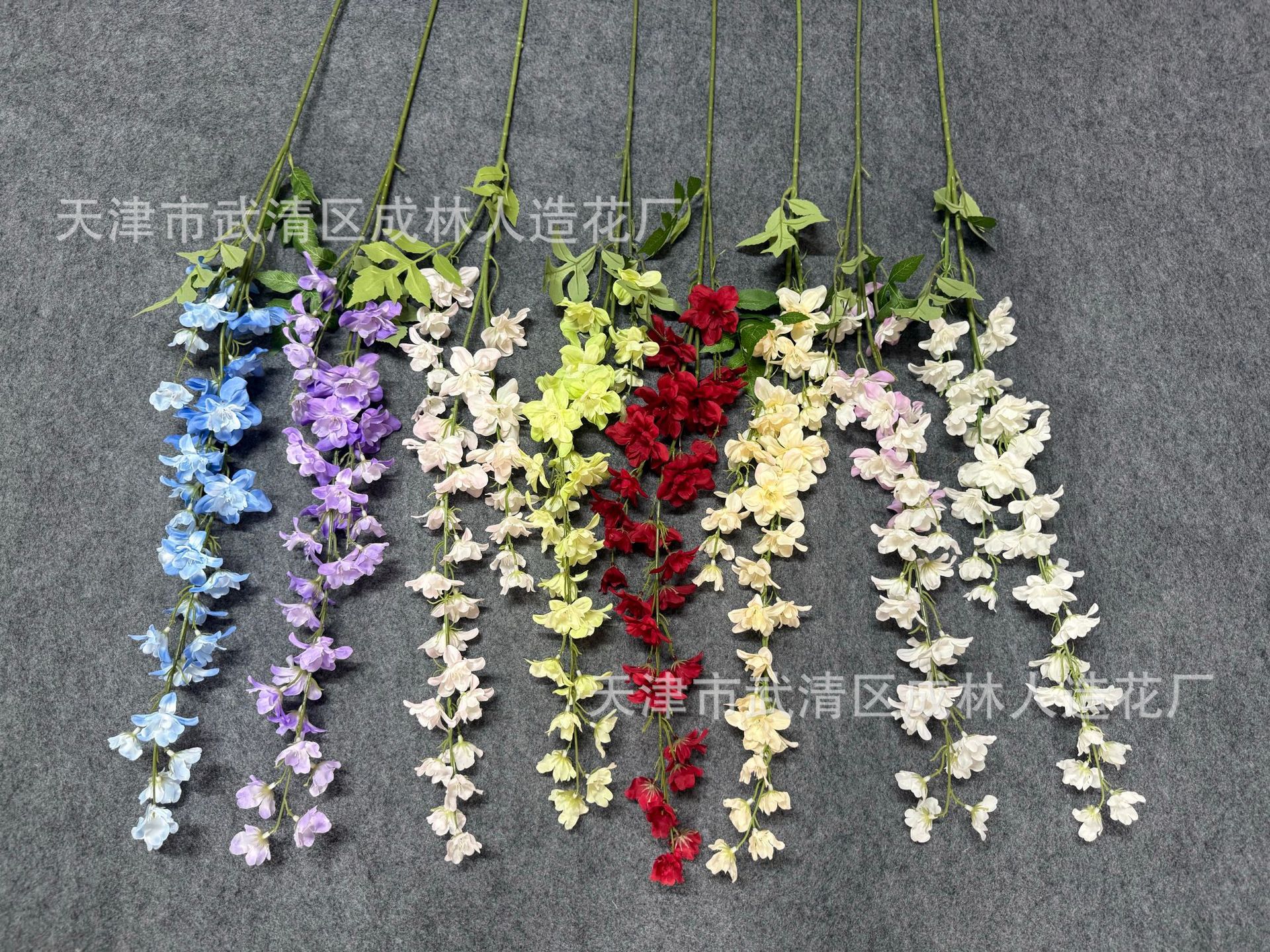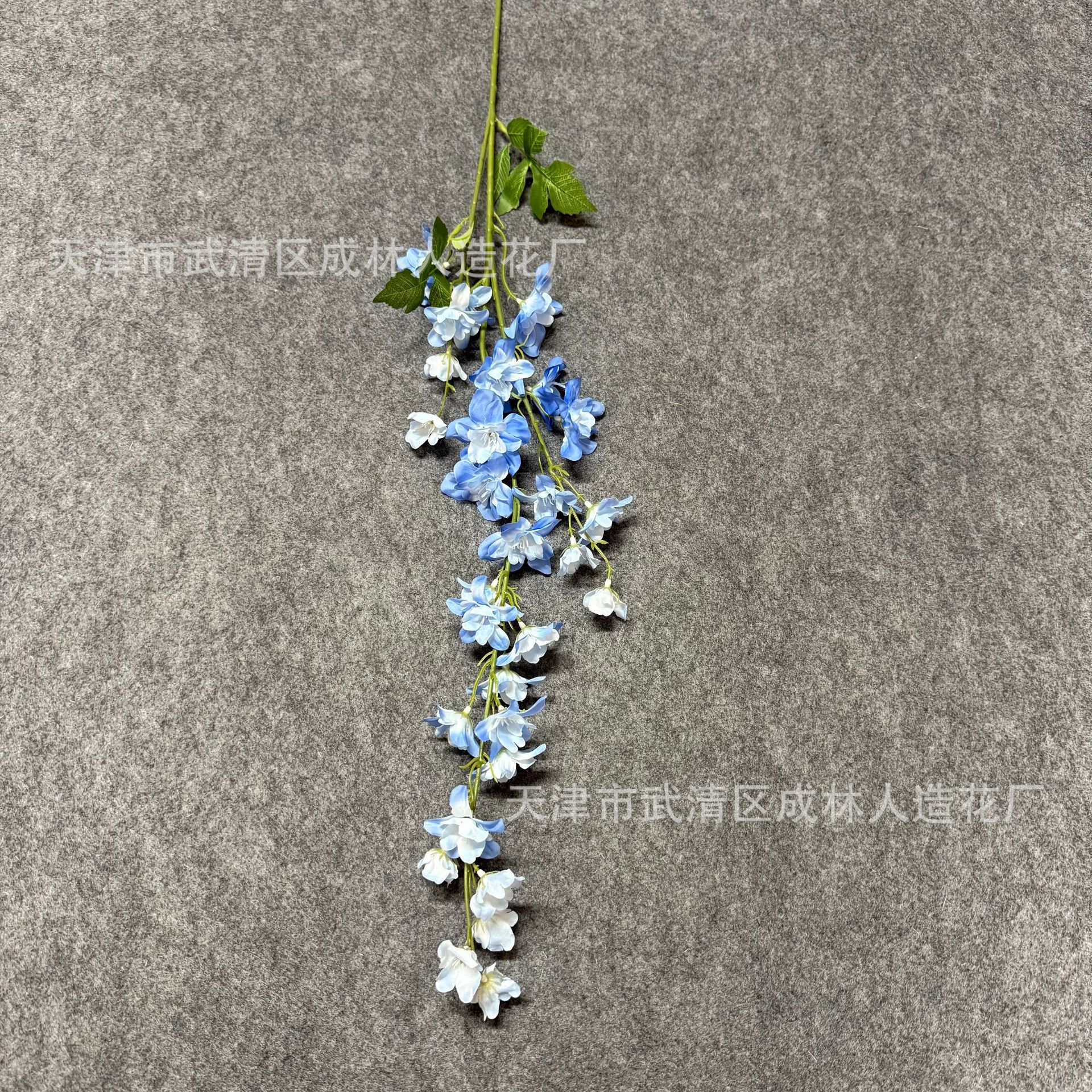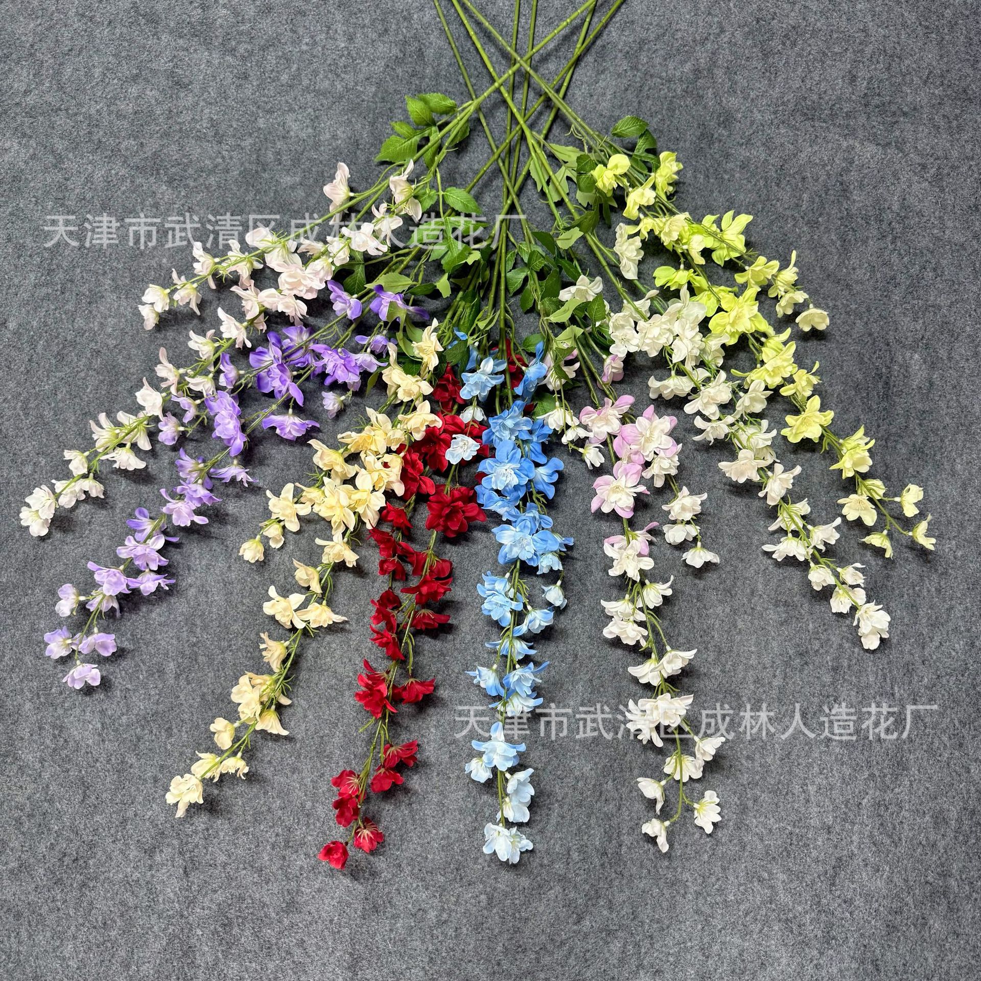 新品3叉飞燕草婚庆花排路引挑高花材 厂家批发仿真花场景布置假花