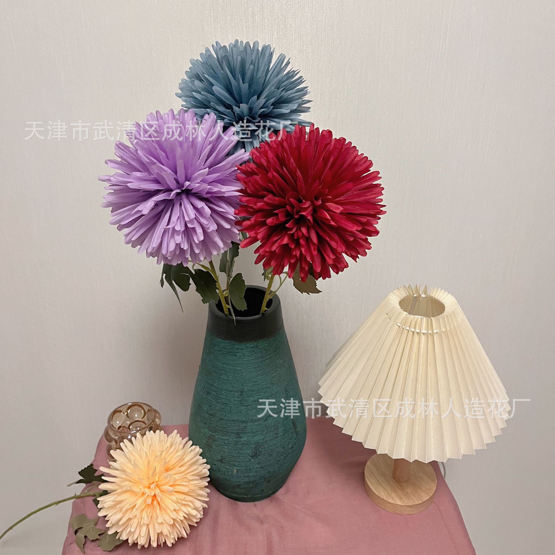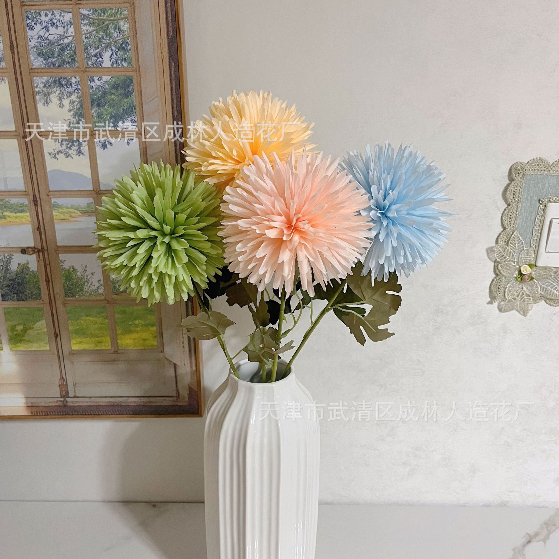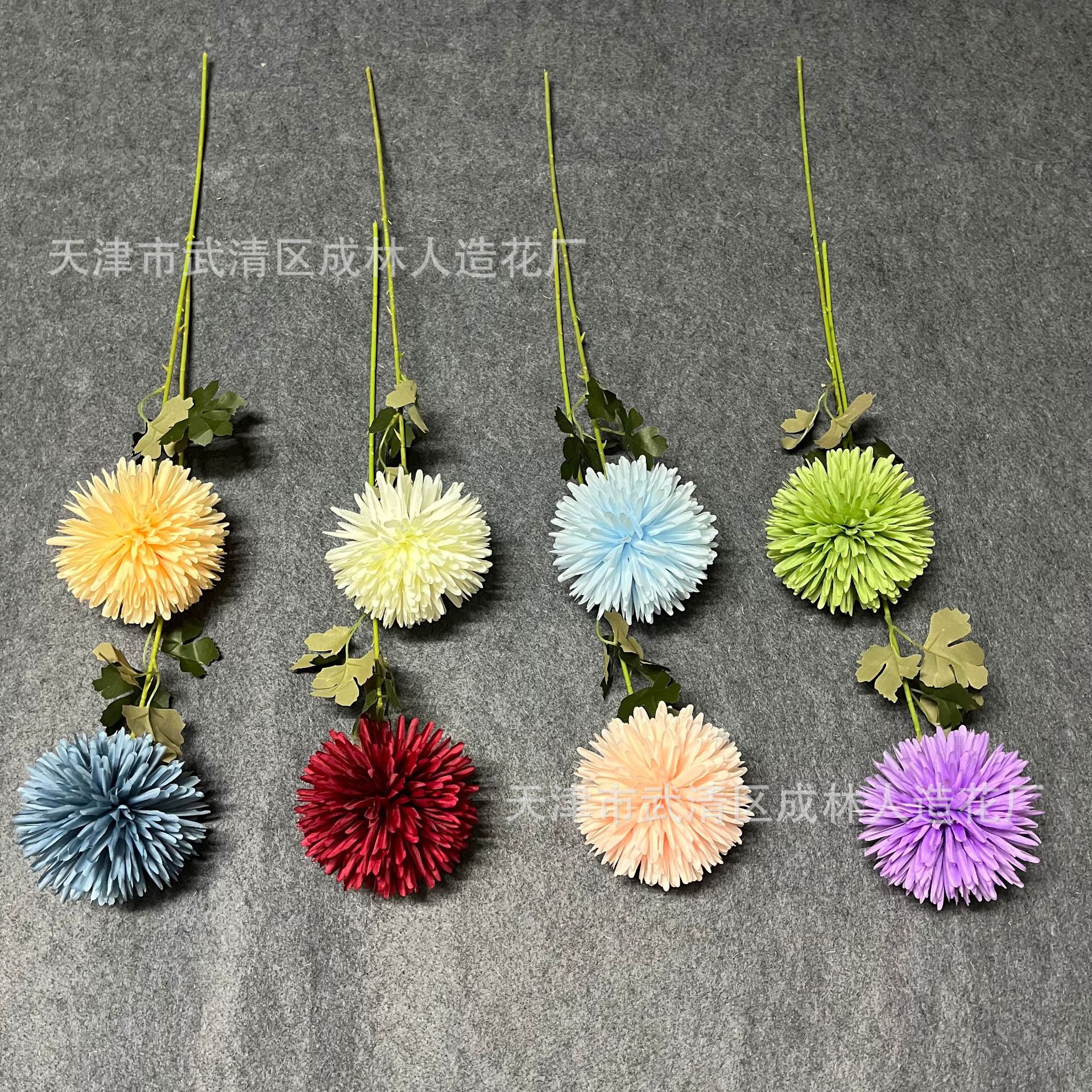 仿真单支大球菊厂家批发蒲公英葱球乒乓菊婚庆装饰花外贸跨境假花