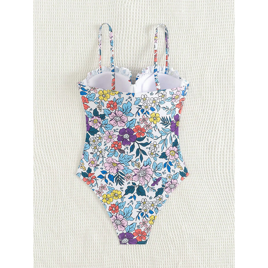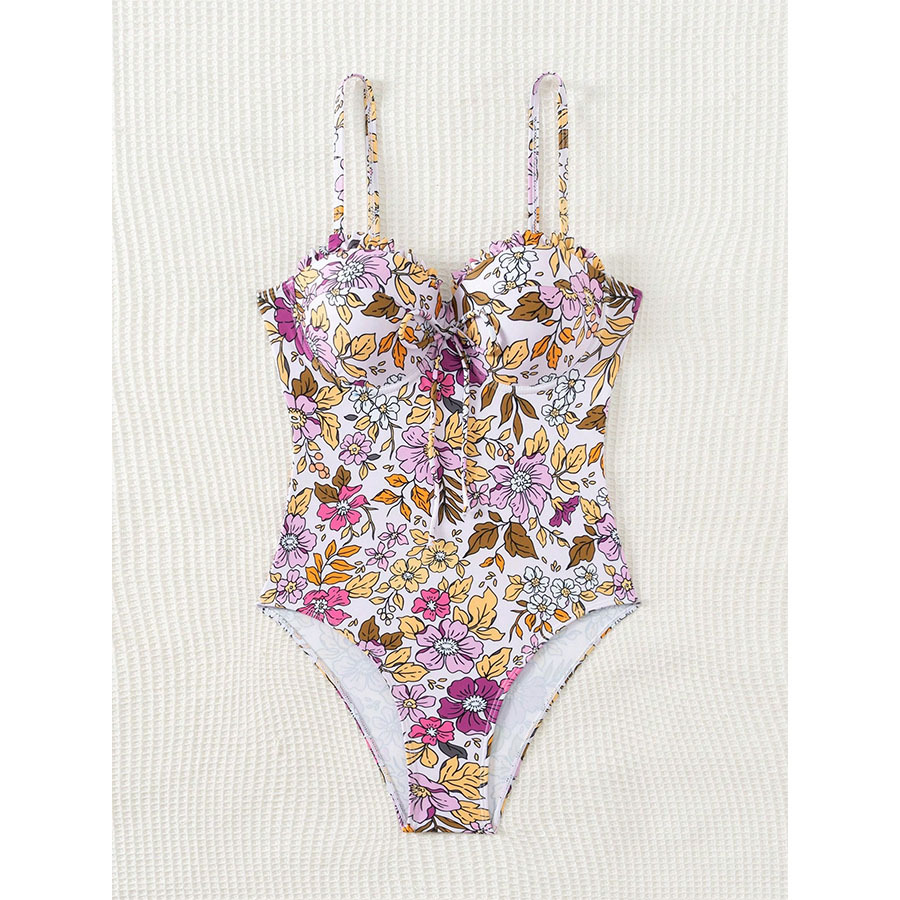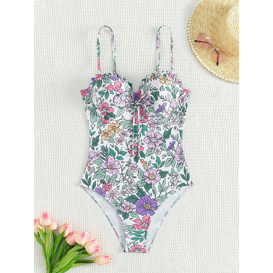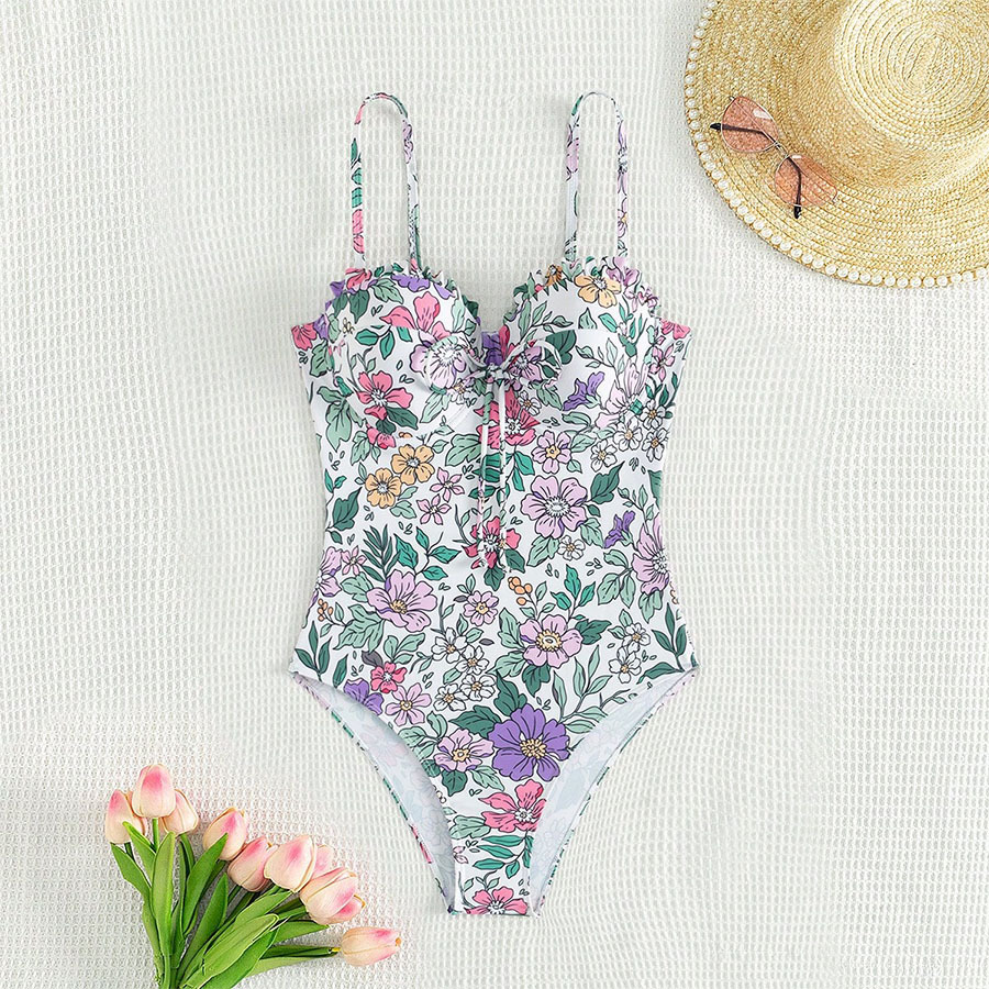 2025新款欧美吊带蝴蝶结数码印花性感女连体泳衣跨境外贸厂家直销