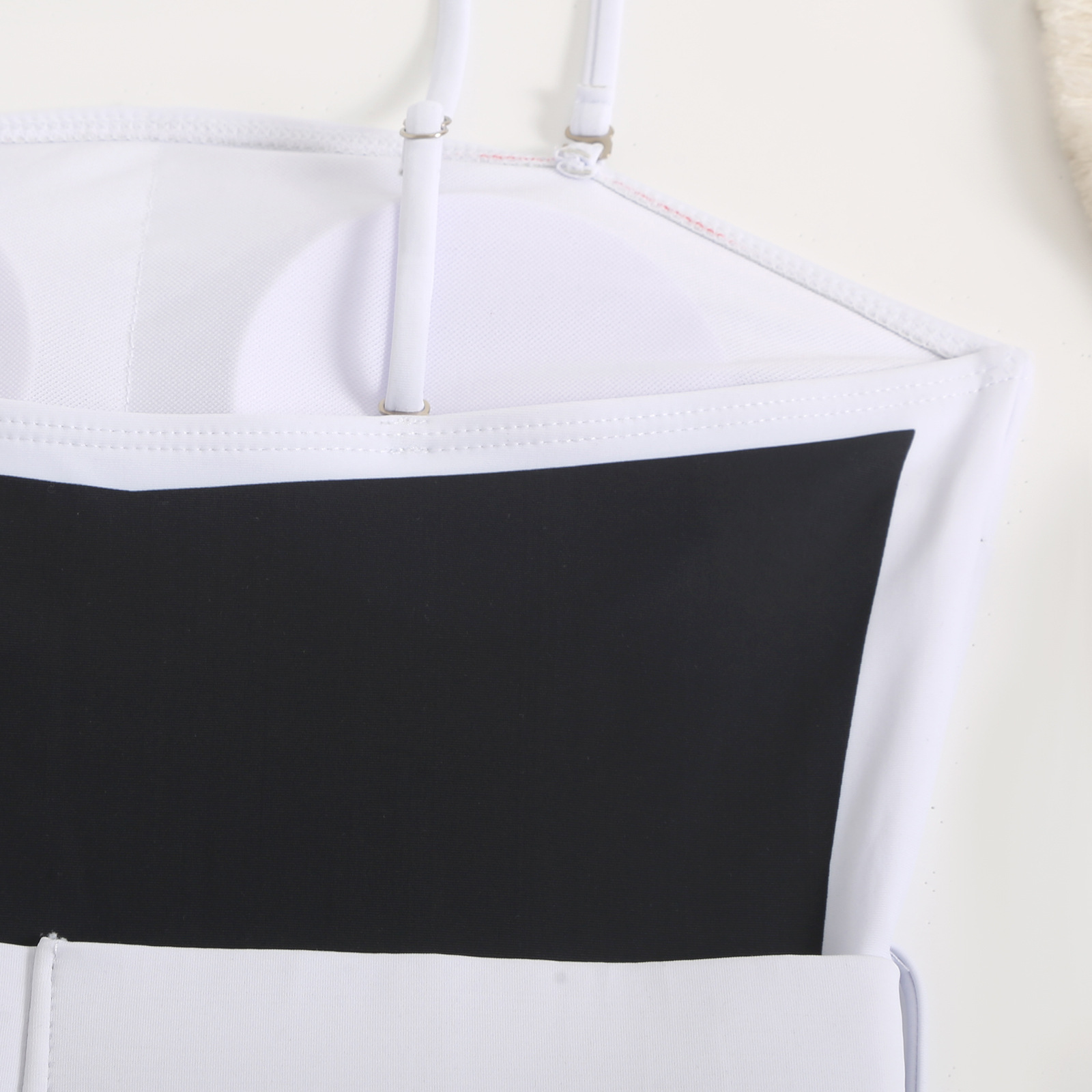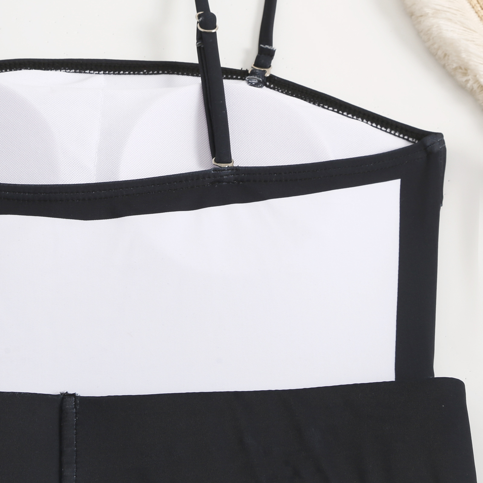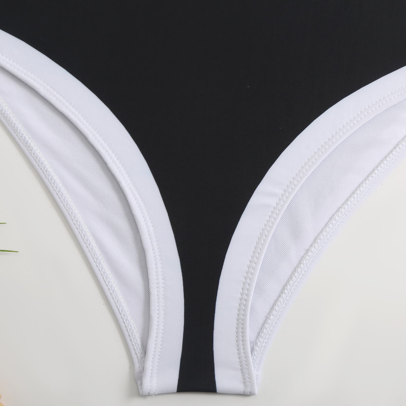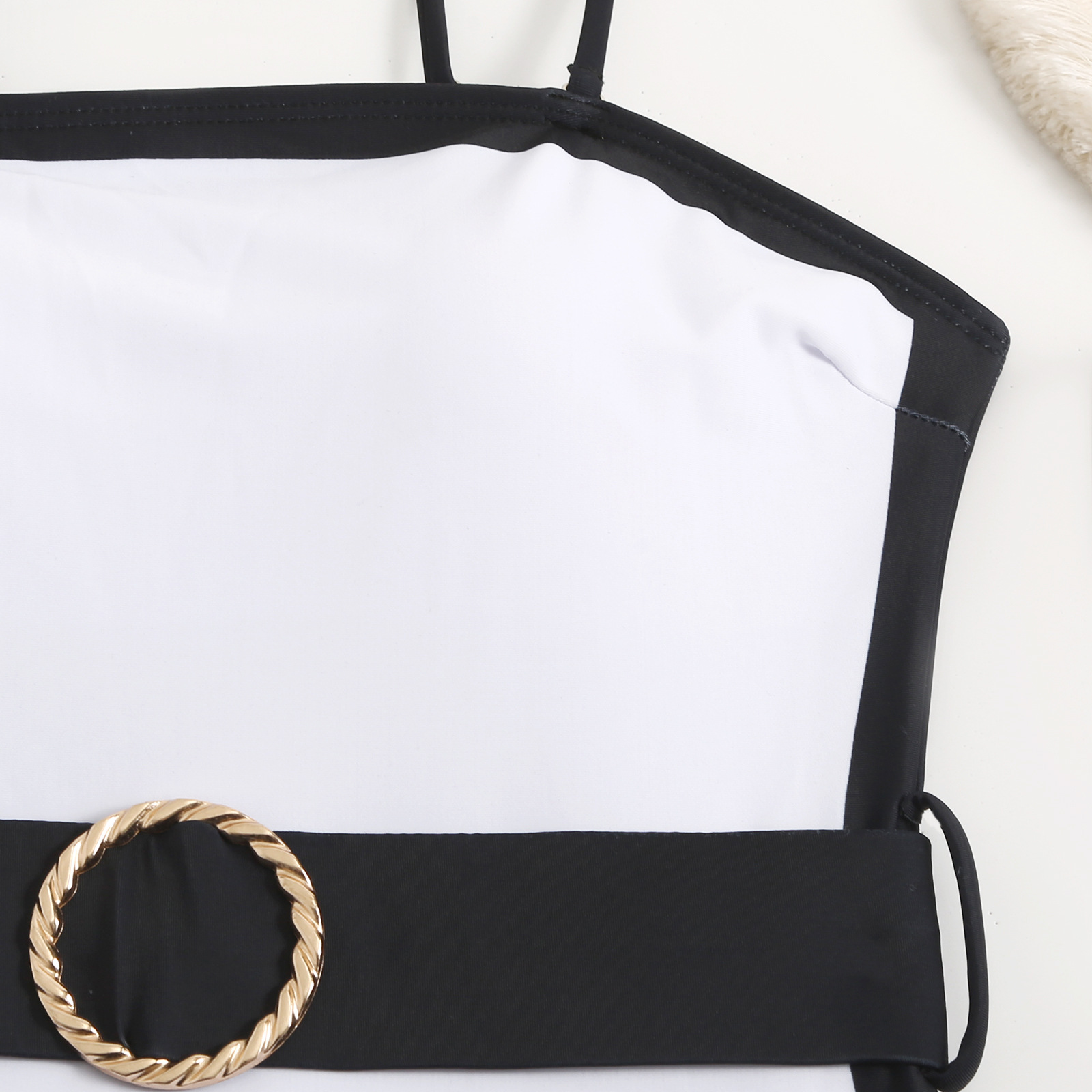 2025爆款欧美新款泳衣女黑白欧美腰带时尚性感连体泳装雪纺罩衫女