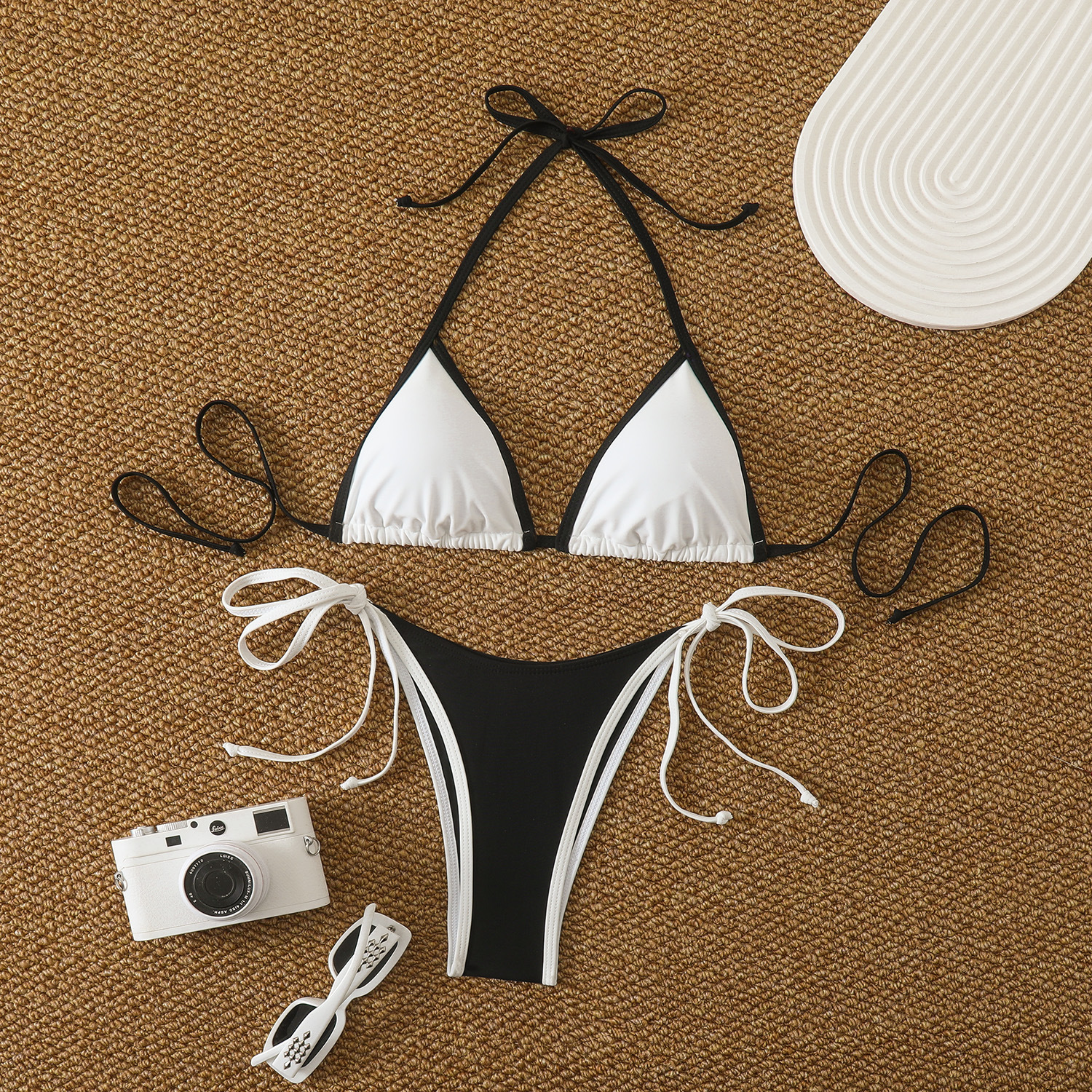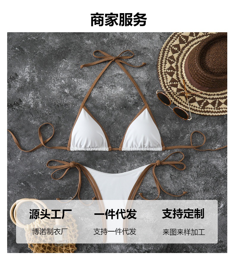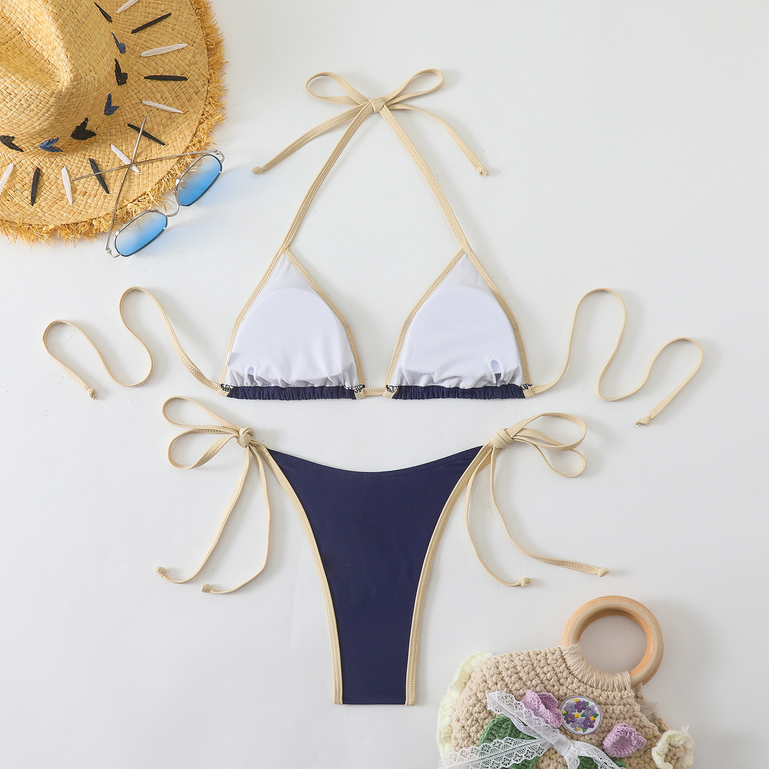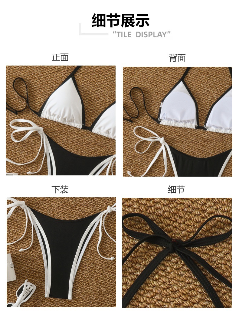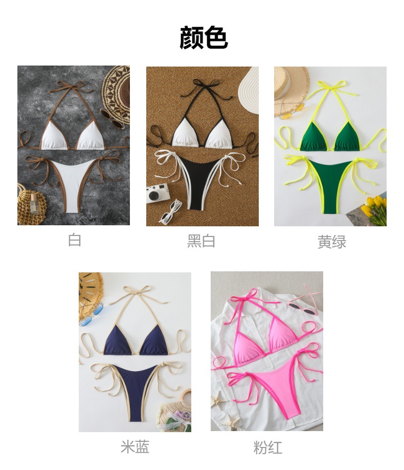 2026亚马逊欧美新款bikini拼色包边绑带三角性感分体比基尼泳衣女