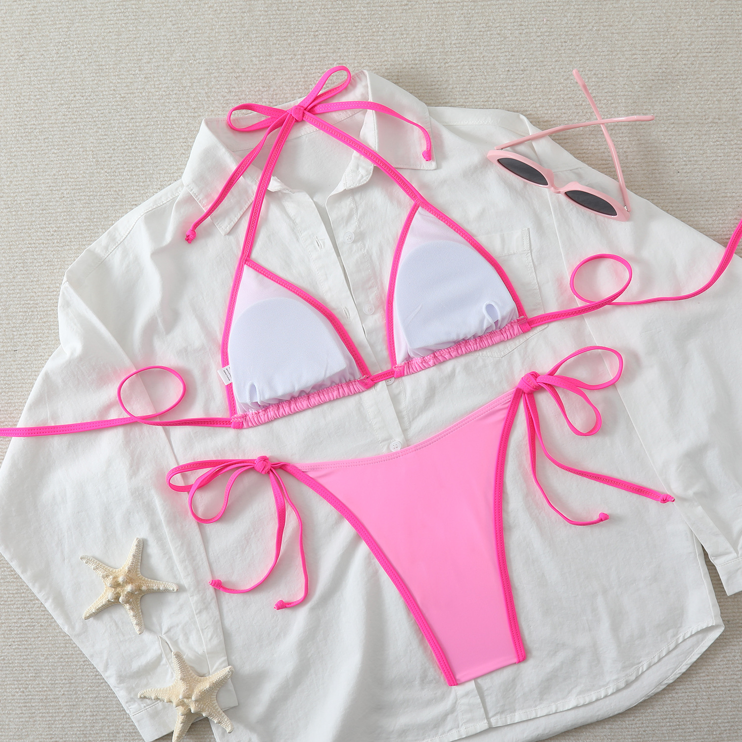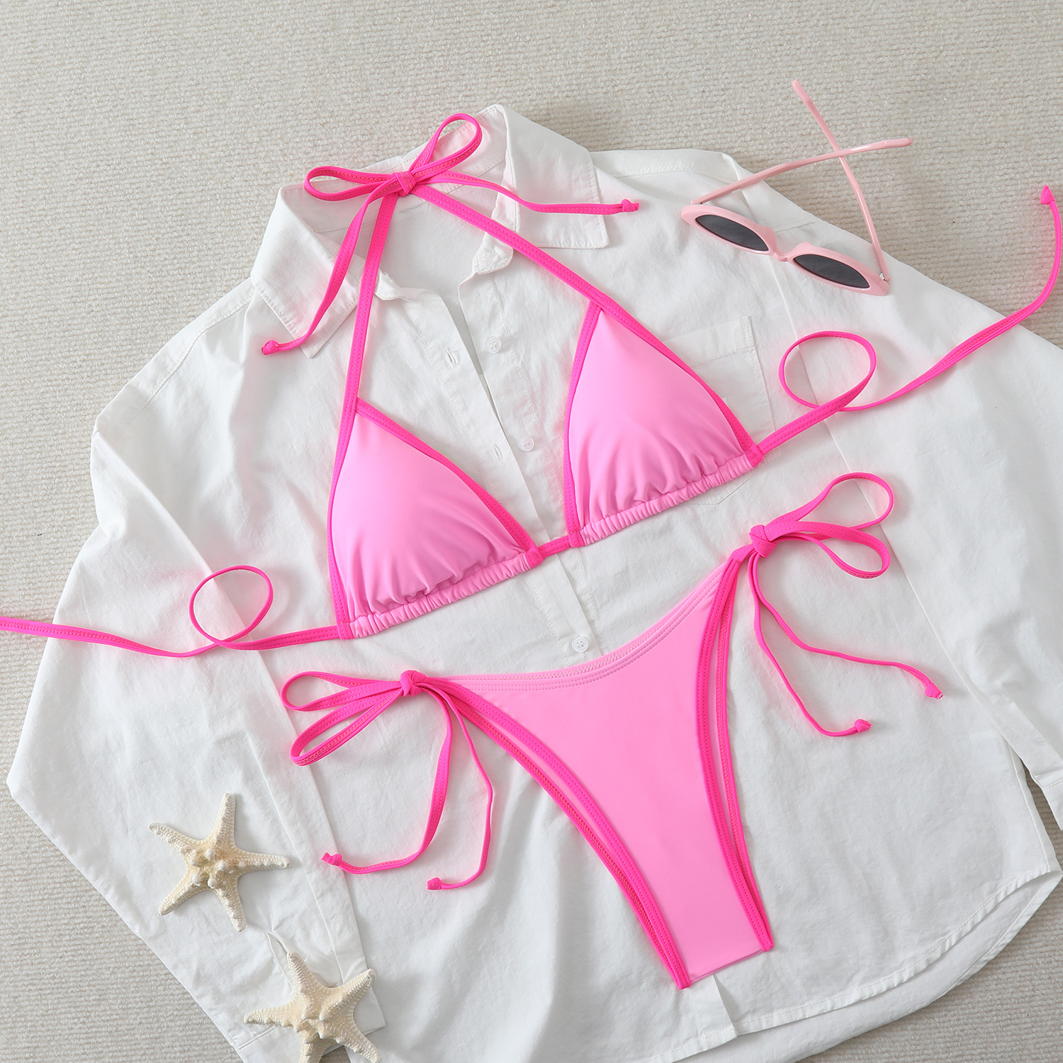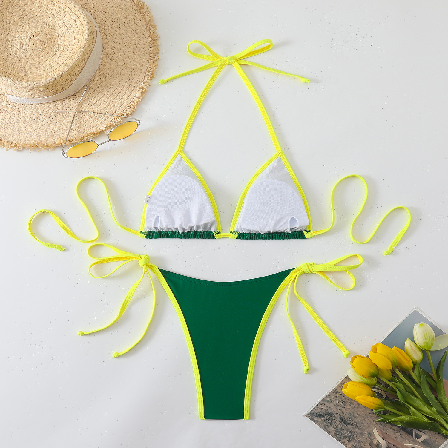 2026亚马逊欧美新款bikini拼色包边绑带三角性感分体比基尼泳衣女