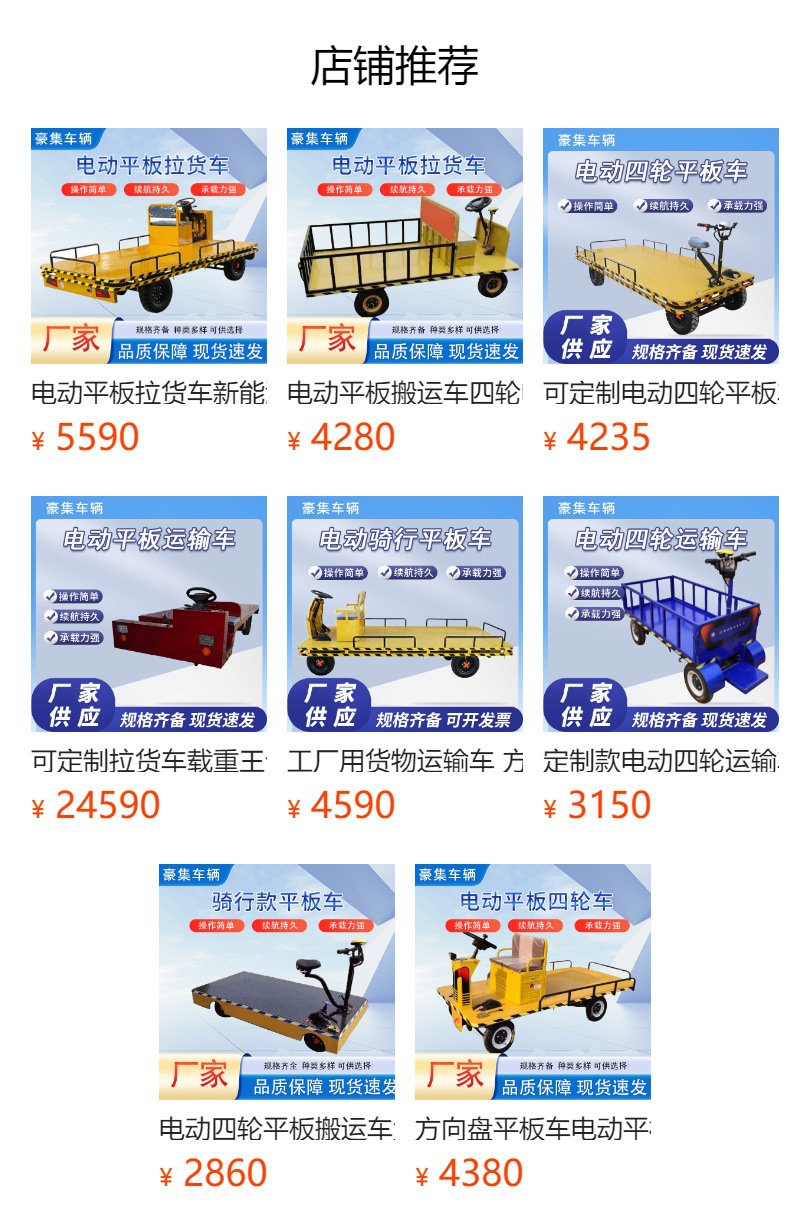 电动四轮手推车拉货车农场菜市场搬运平板车骑行款工厂货物平板车
