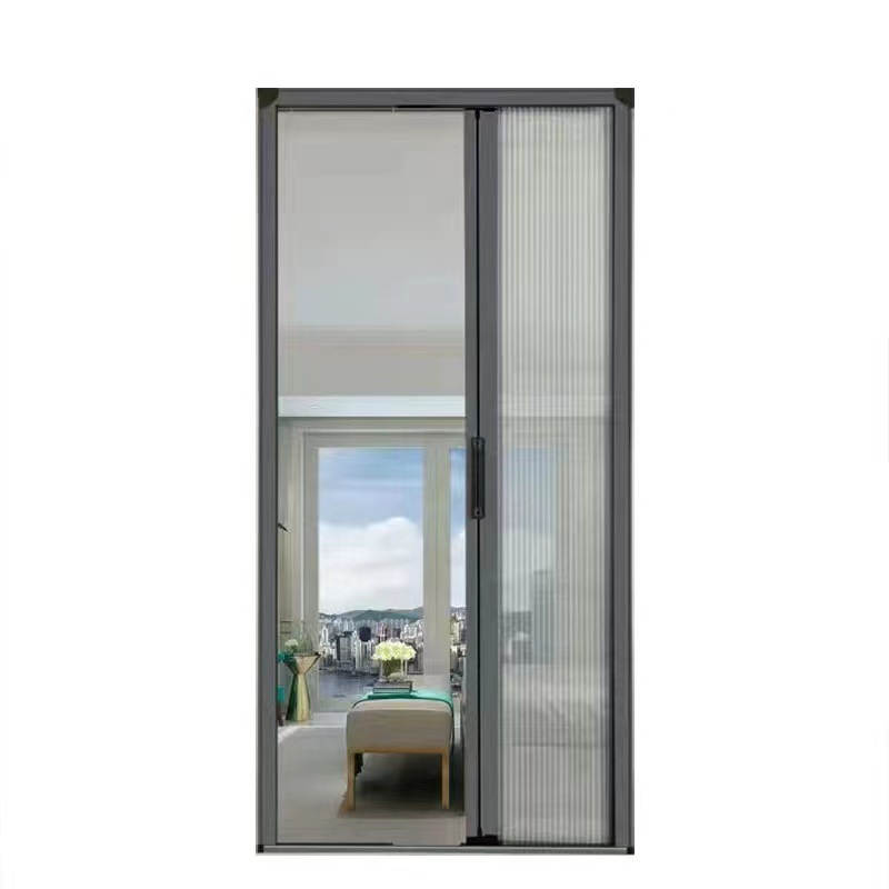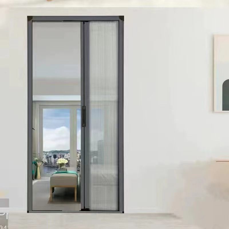 折叠推拉单开纱门 金属透气纱窗框内可推拉纱窗纱门双开折叠纱门