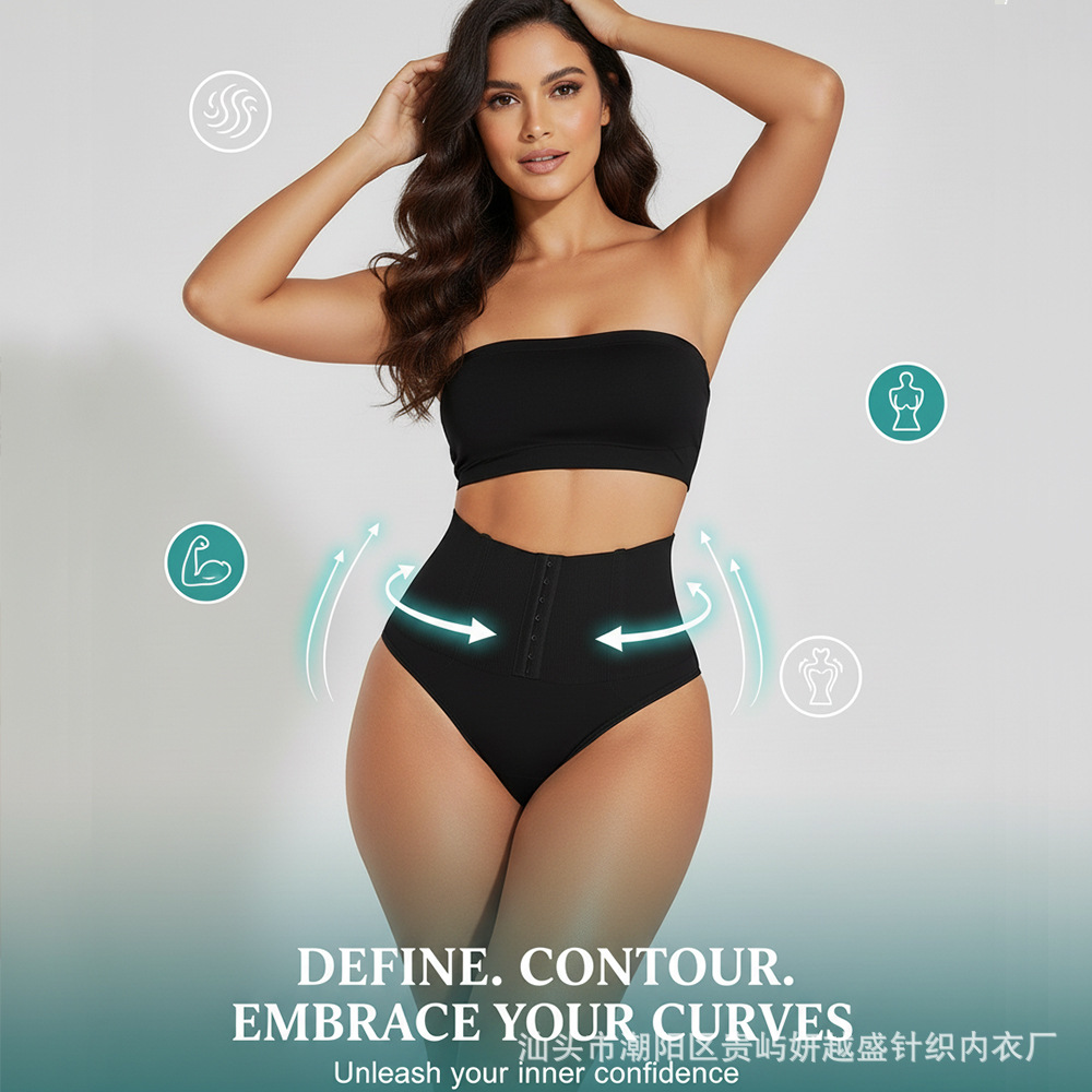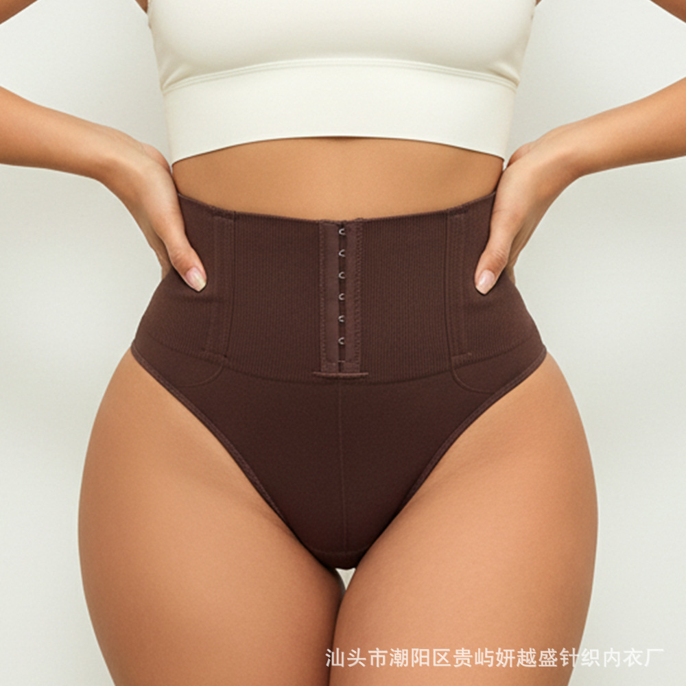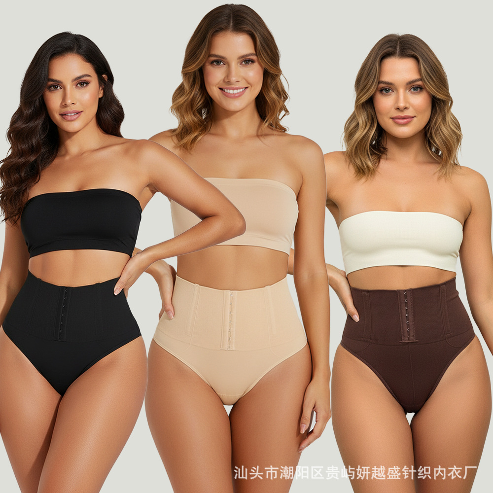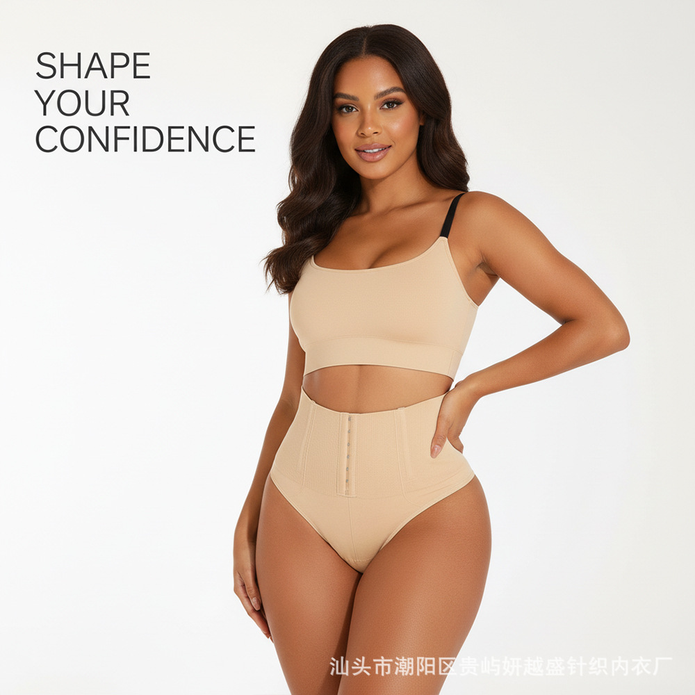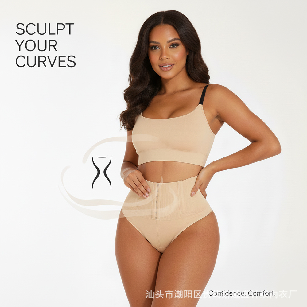 Women's thong shapewear前排扣高腰T裤无痕收腹提臀防卷边塑身裤