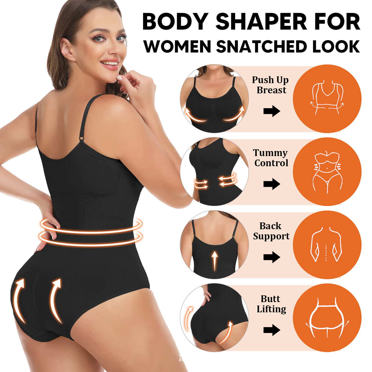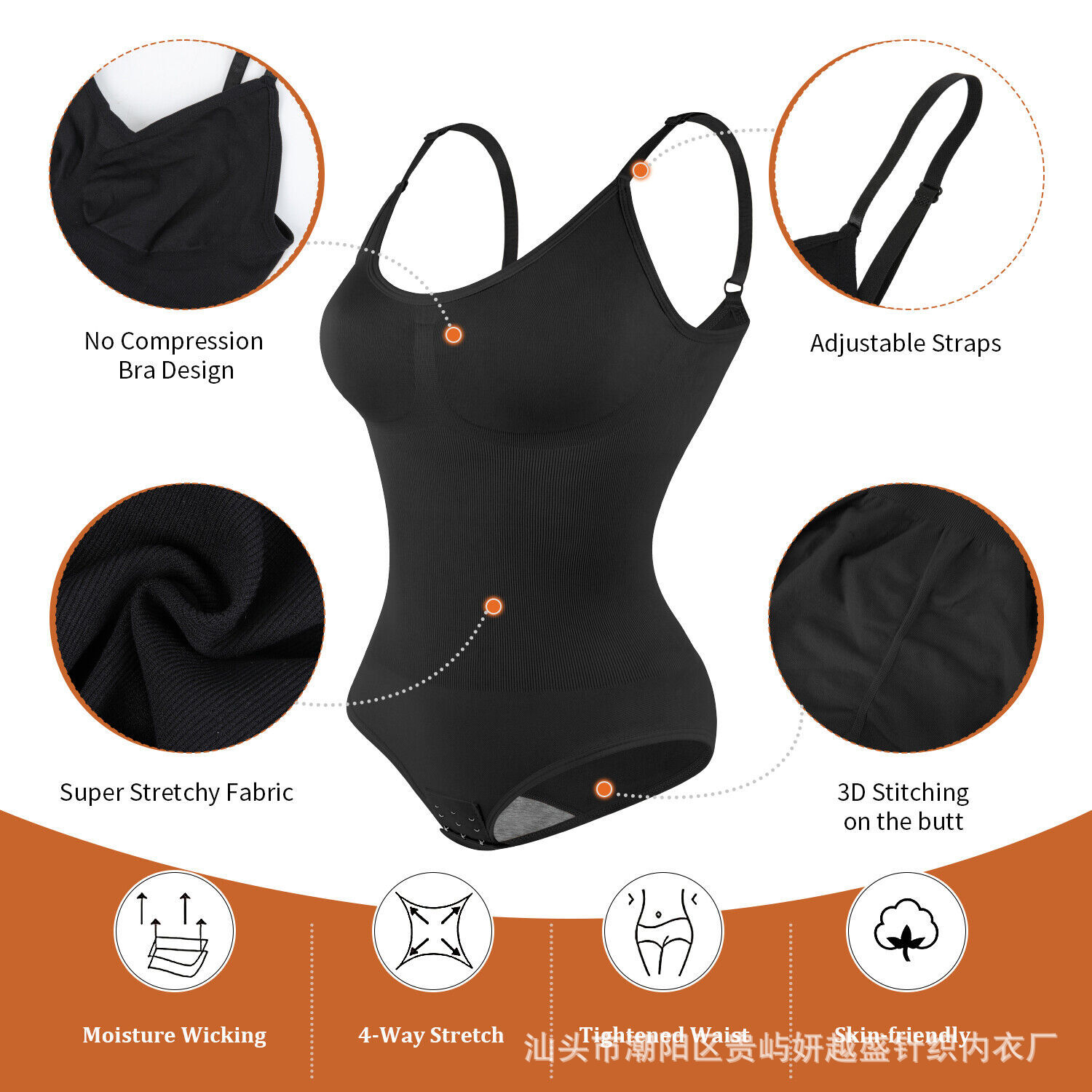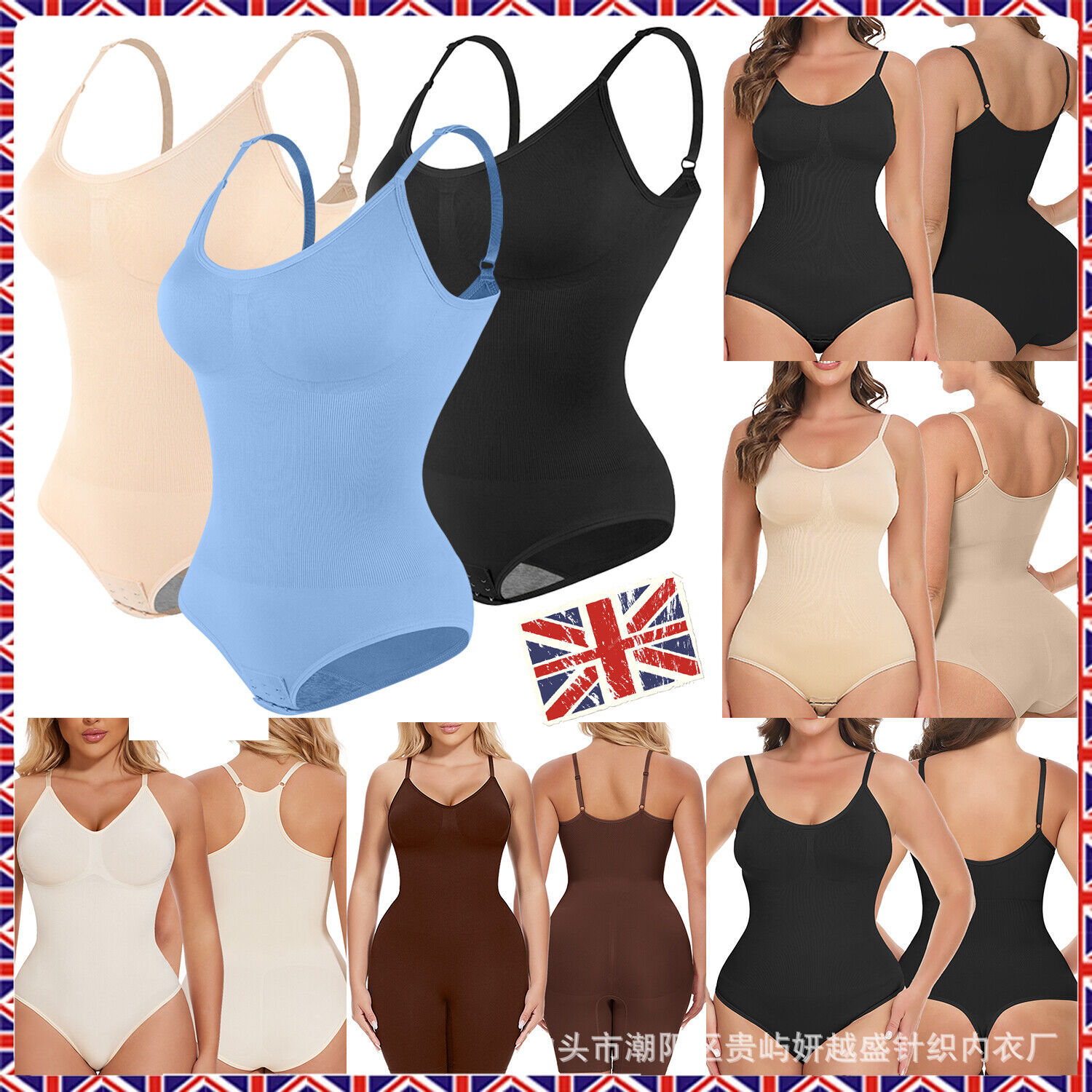 欧美跨境美体塑形衣背心式美背带包臀排扣连体衣产后束身美体衣