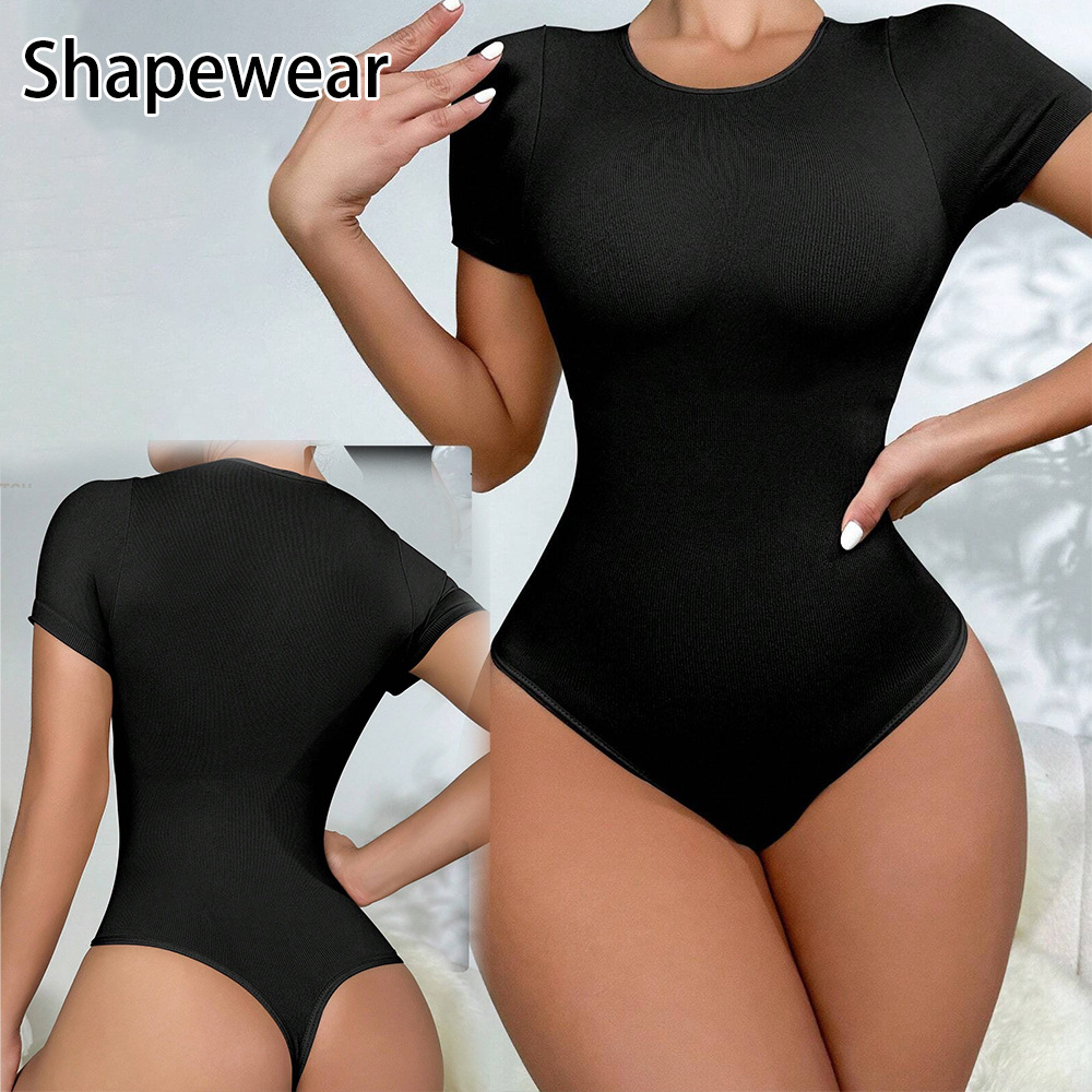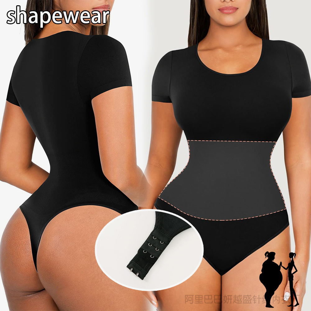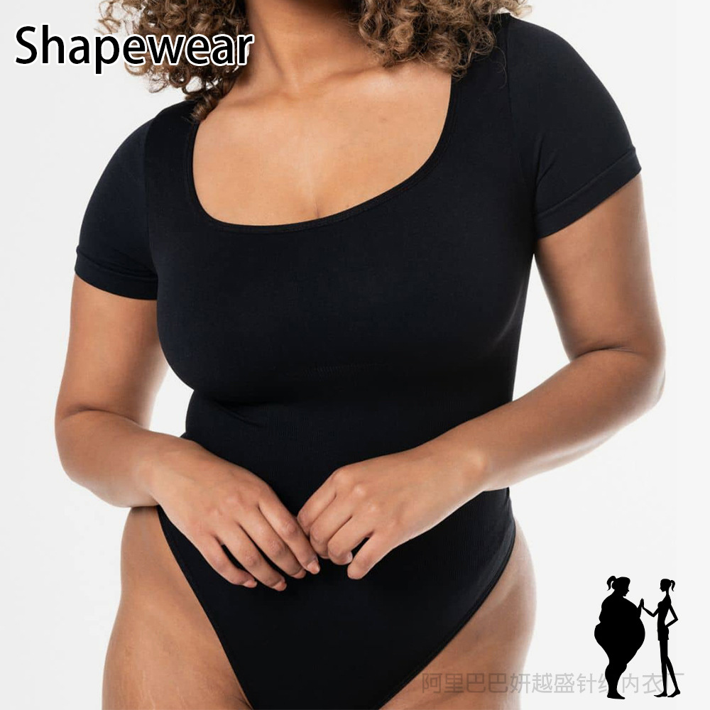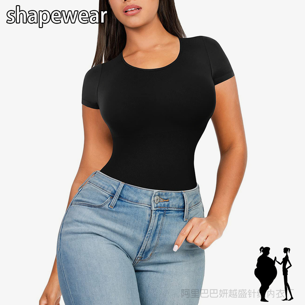 跨境亚马逊上衣女式丁字款塑身衣纯色修身skims塑身衣高弹短袖款