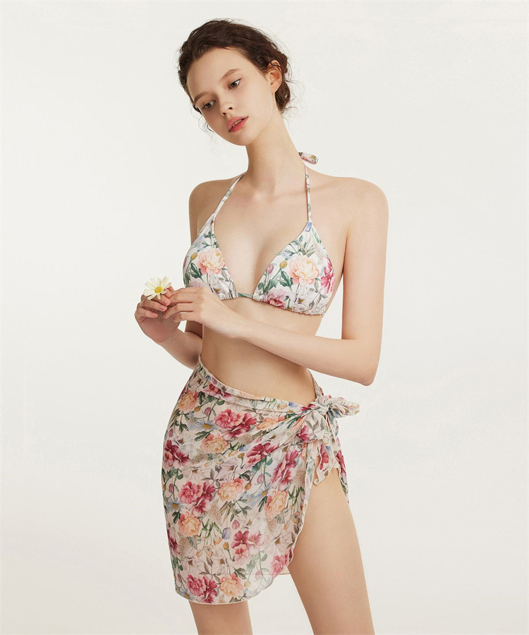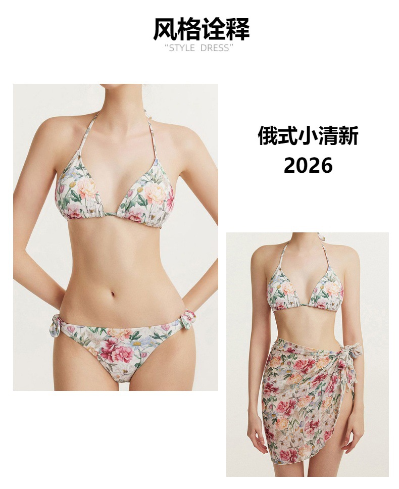Купальник2026俄欧跨境比基尼三件套BS分体泳衣碎花泳装