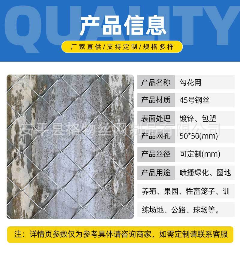 - 规格:3.0钢丝拧麻花 7公分孔 2.5米高