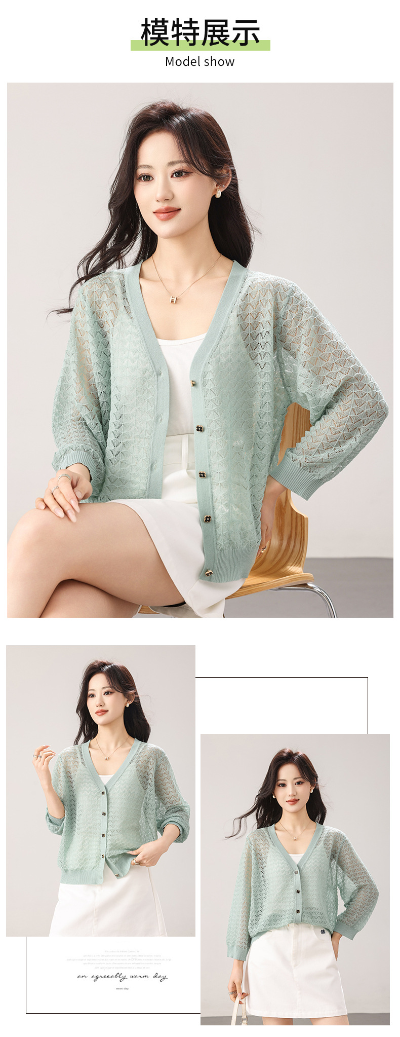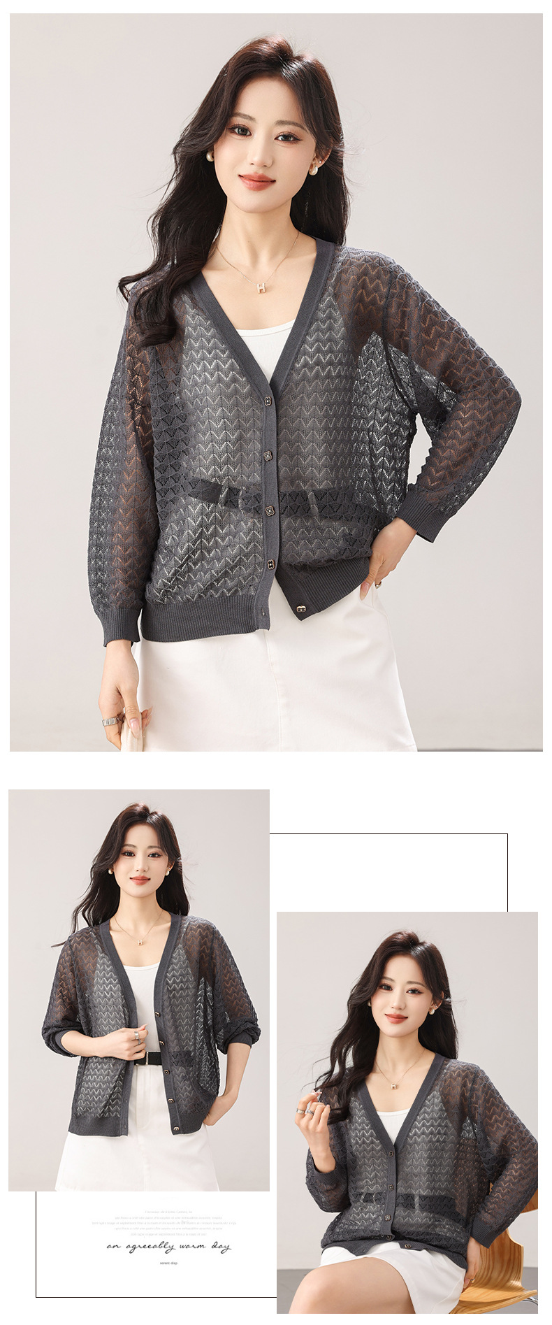 大码女装2026新款针织毛衣开衫镂空莱赛尔上衣洋气小衫宽松薄外套