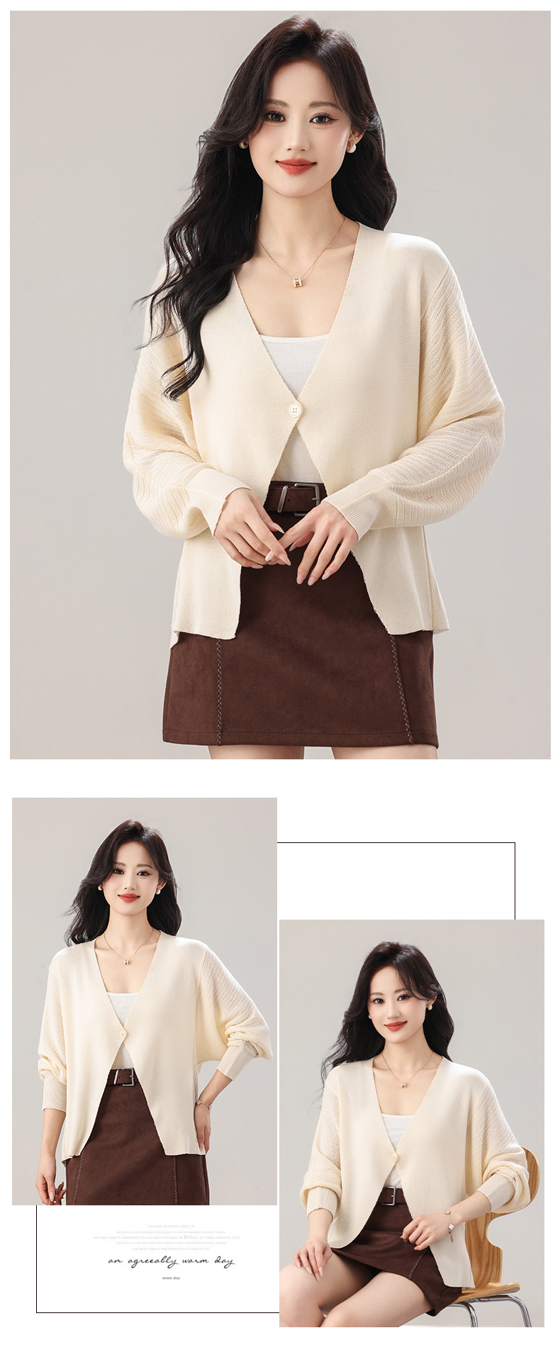 气质一粒扣韩版休闲小外搭2026春季大码女装长袖宽松毛衣针织外套
