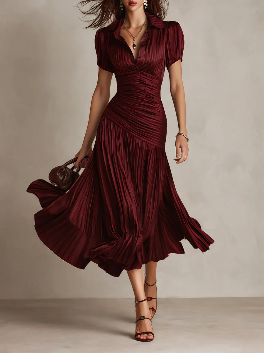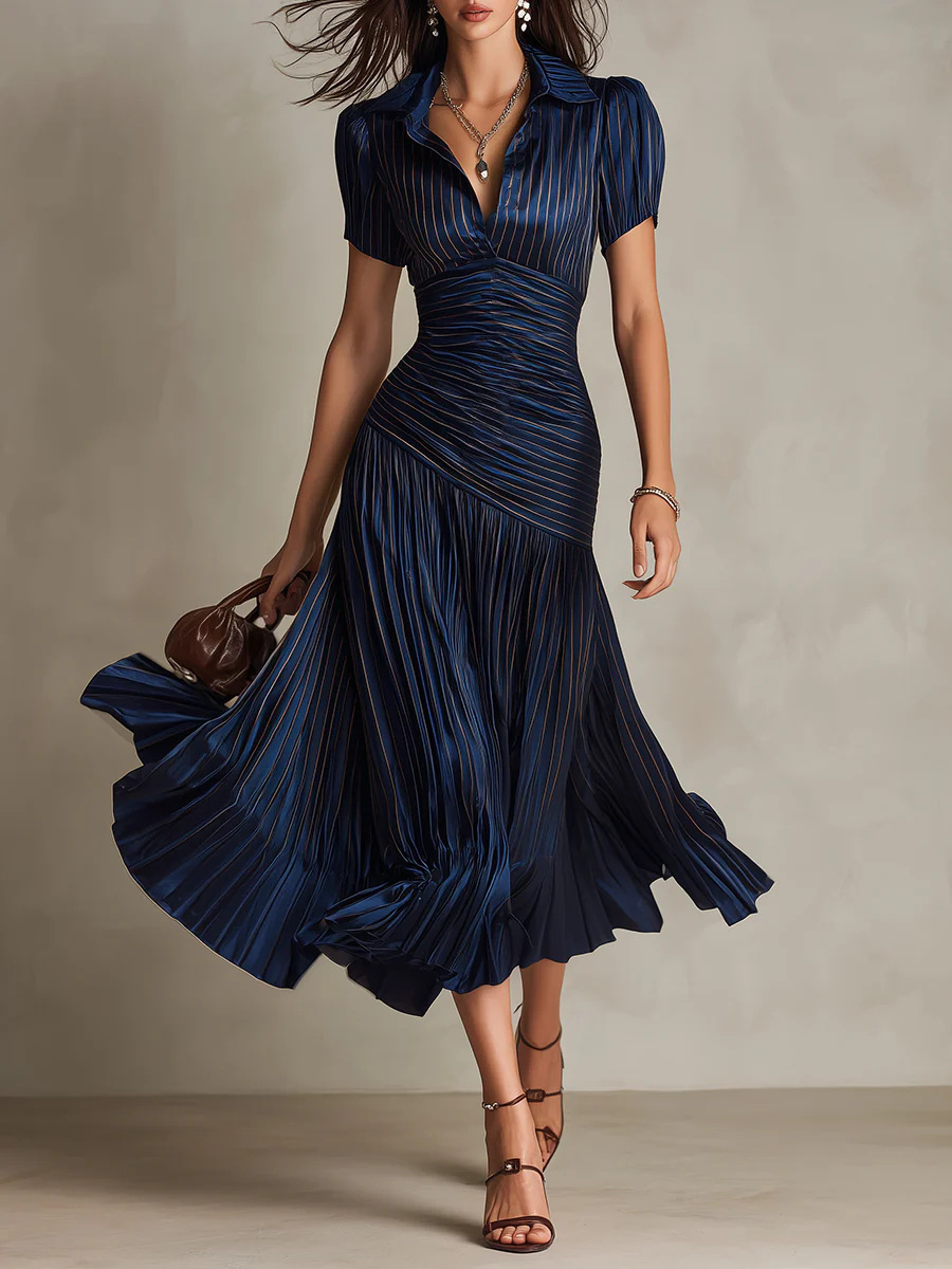 2026新款欧美跨境亚马逊独立站优雅休闲度假缎面条纹拼接连衣裙女