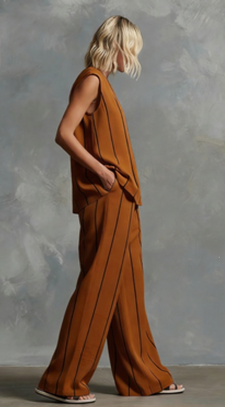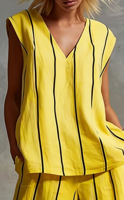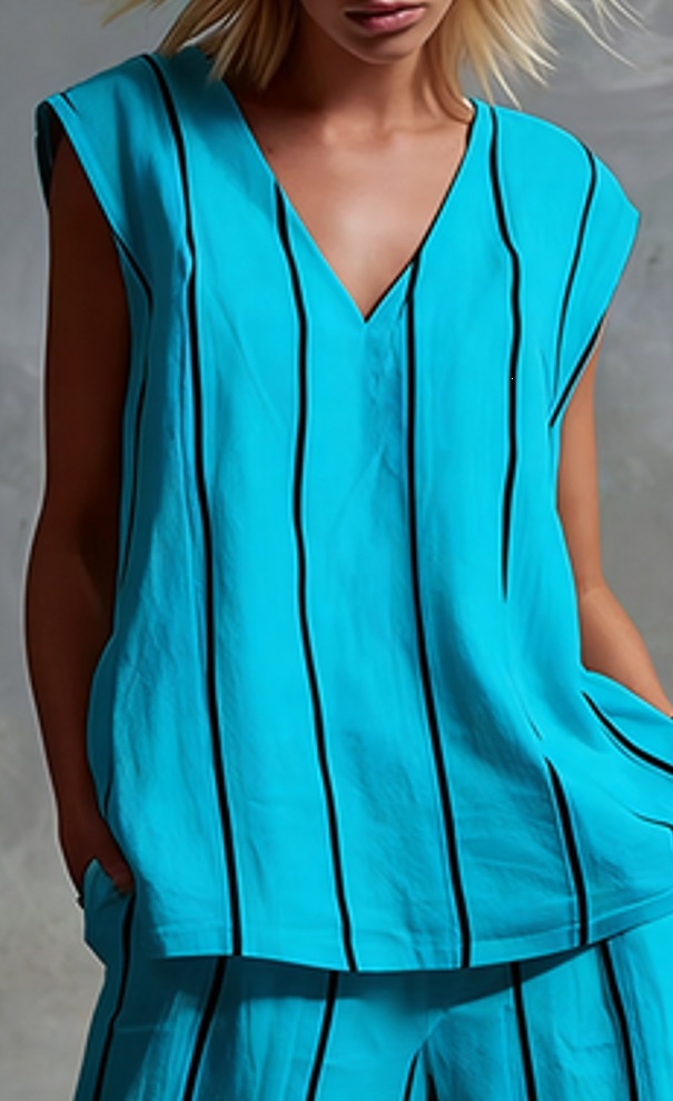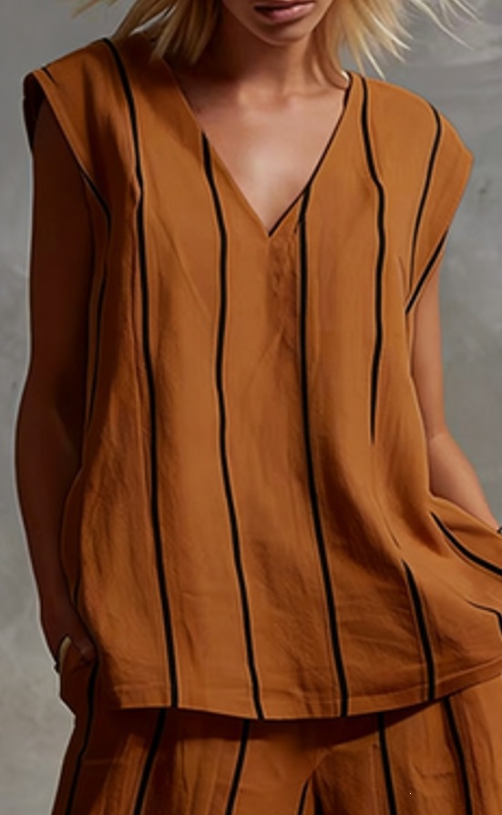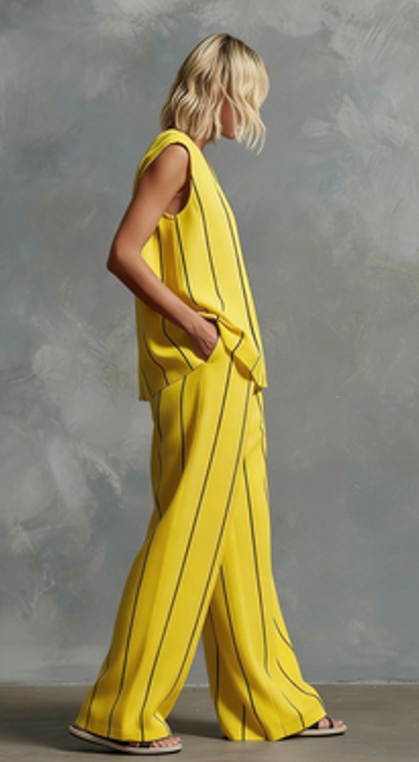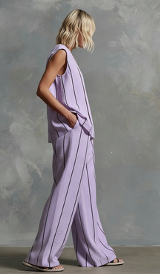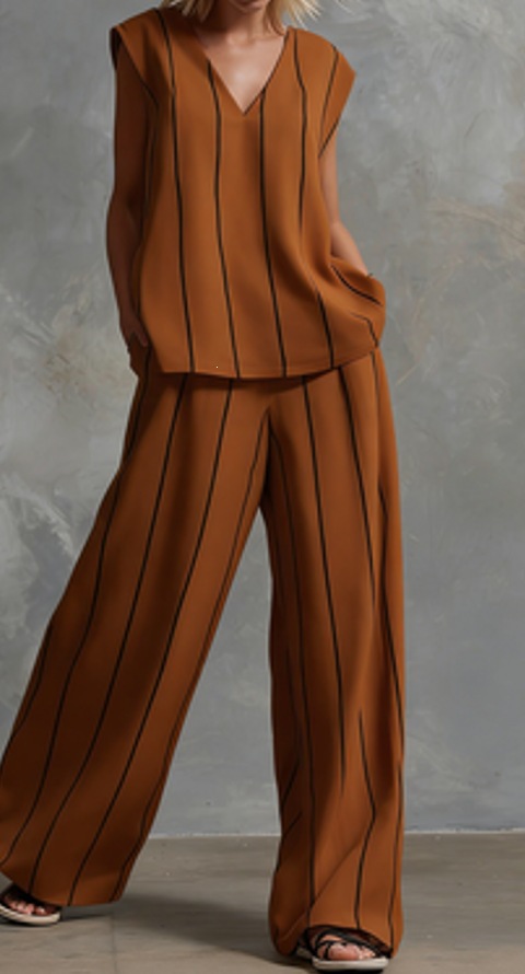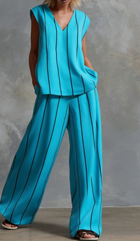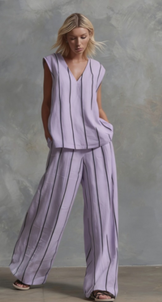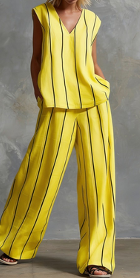 2026跨境欧美亚马逊 黑白竖条纹宽松显瘦棉麻套装阔腿裤两件套