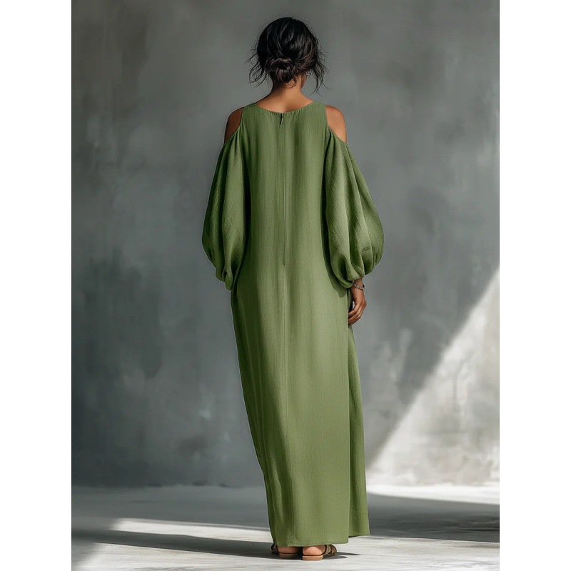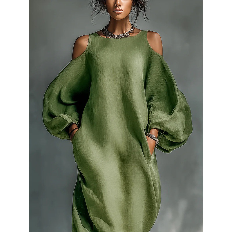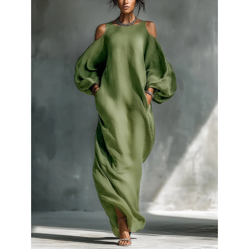 2026跨境欧美春夏新款高端女装长袖露肩长裙中腰套头款连衣裙