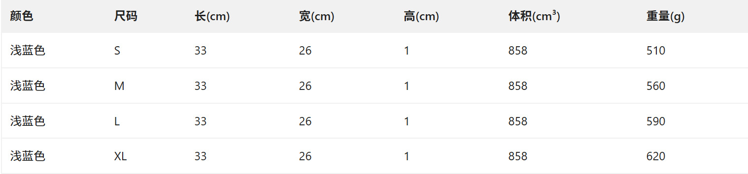 - 颜色:浅蓝色