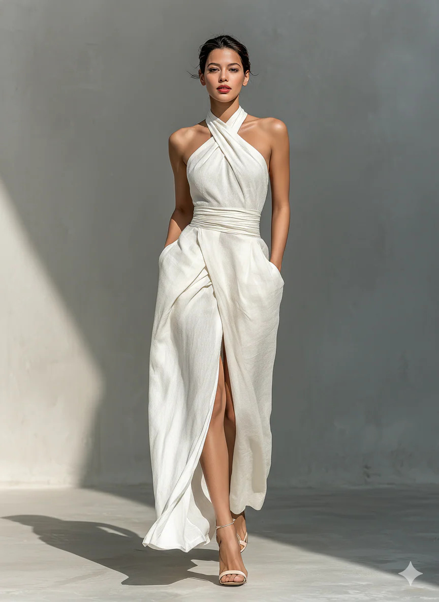 2026年欧美亚马逊跨境外贸夏季新款女装无袖优雅修身纯白色连衣裙