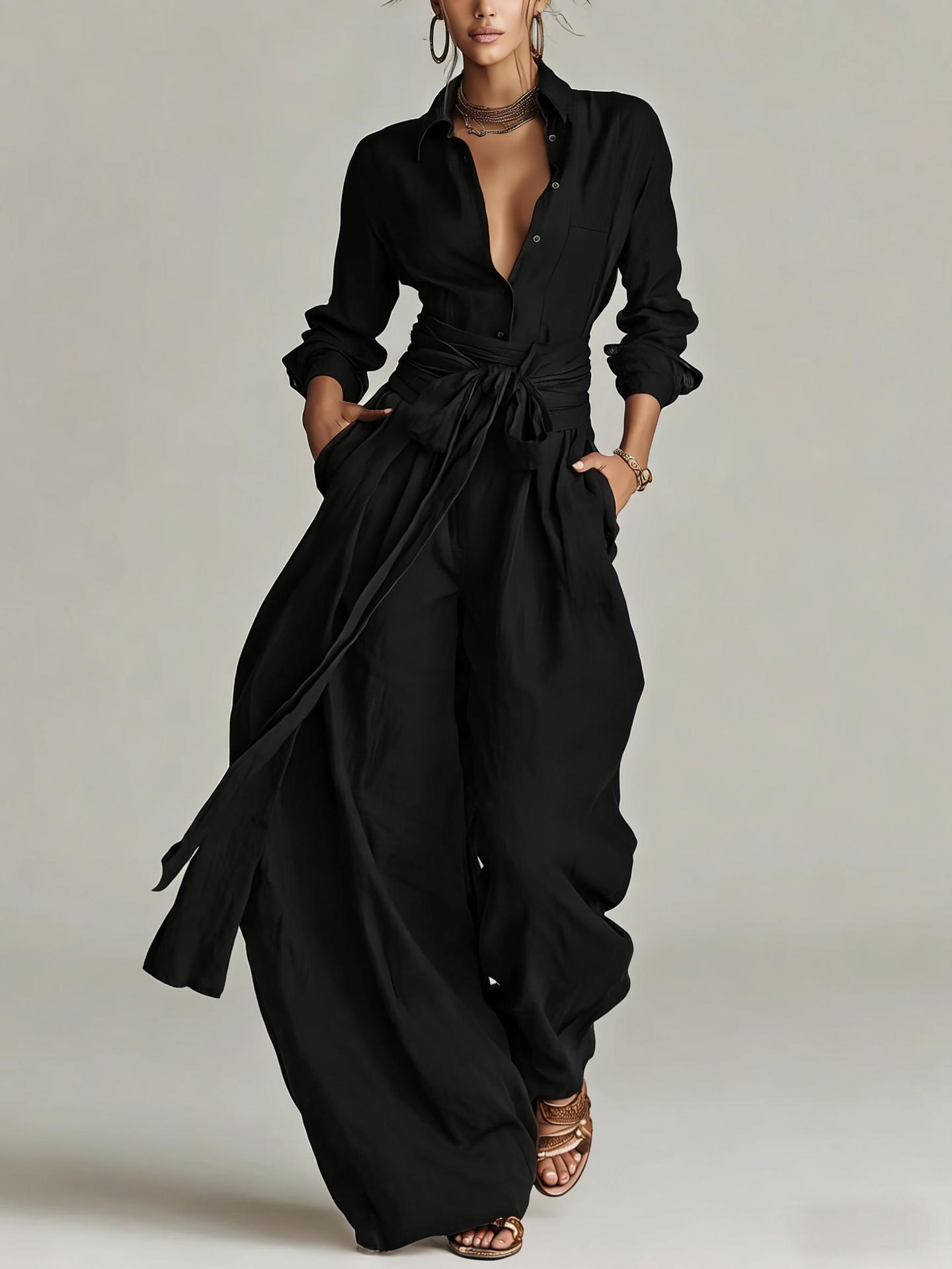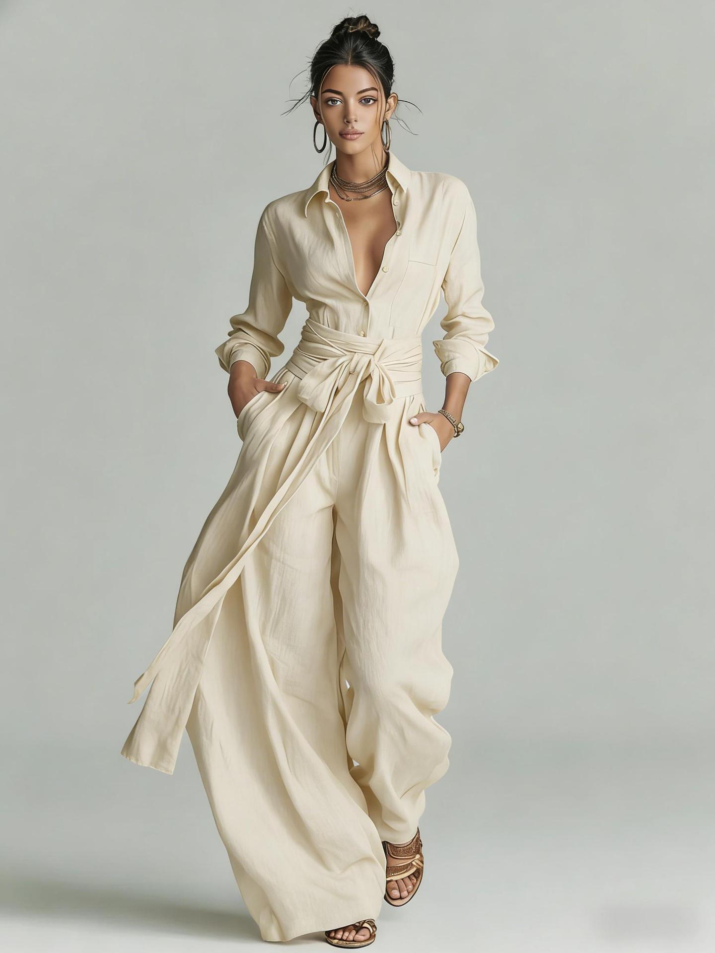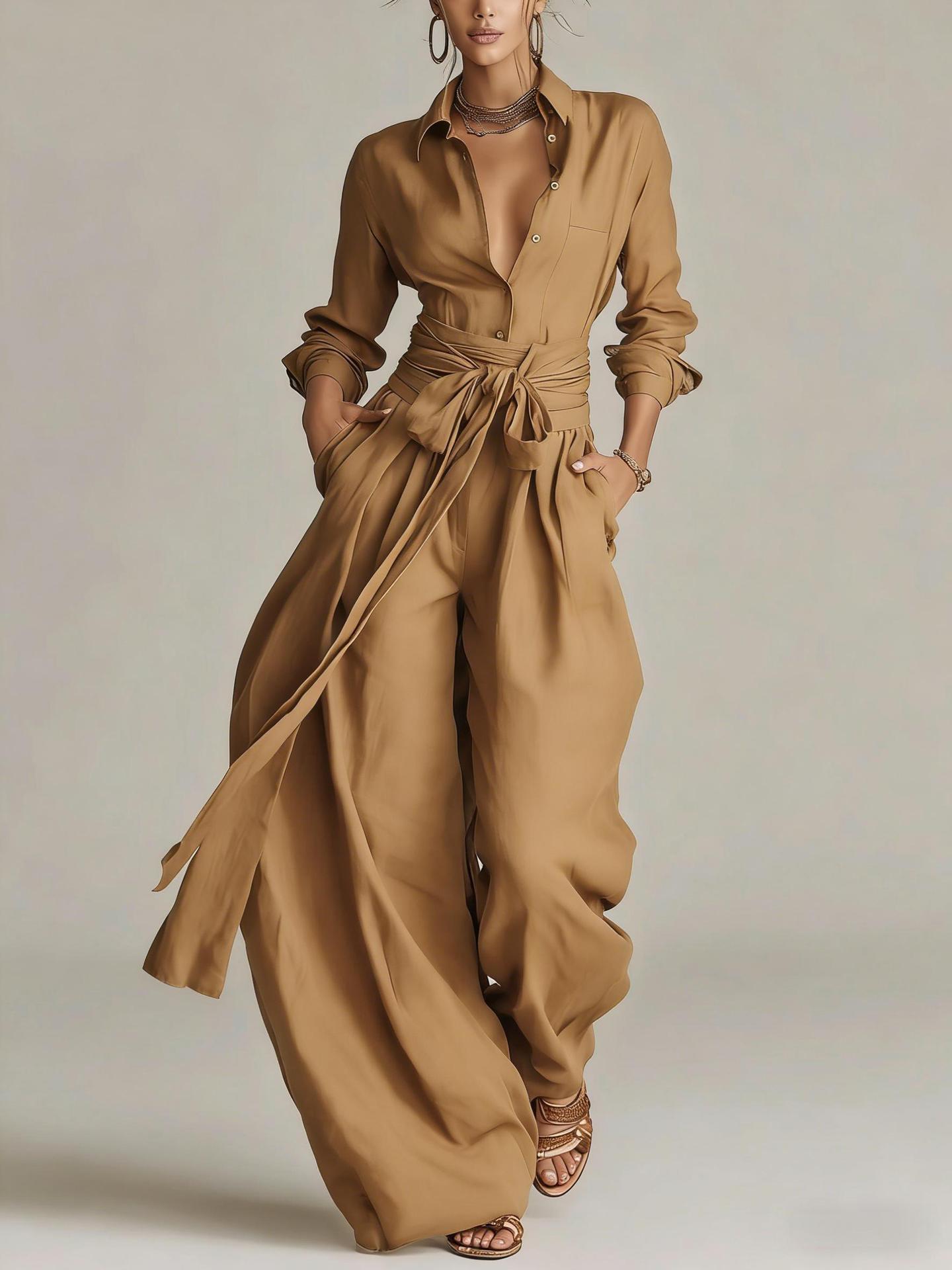 2026跨镜独立站春夏季纯色高腰短袖长裤时尚休闲宽松气质连体裤