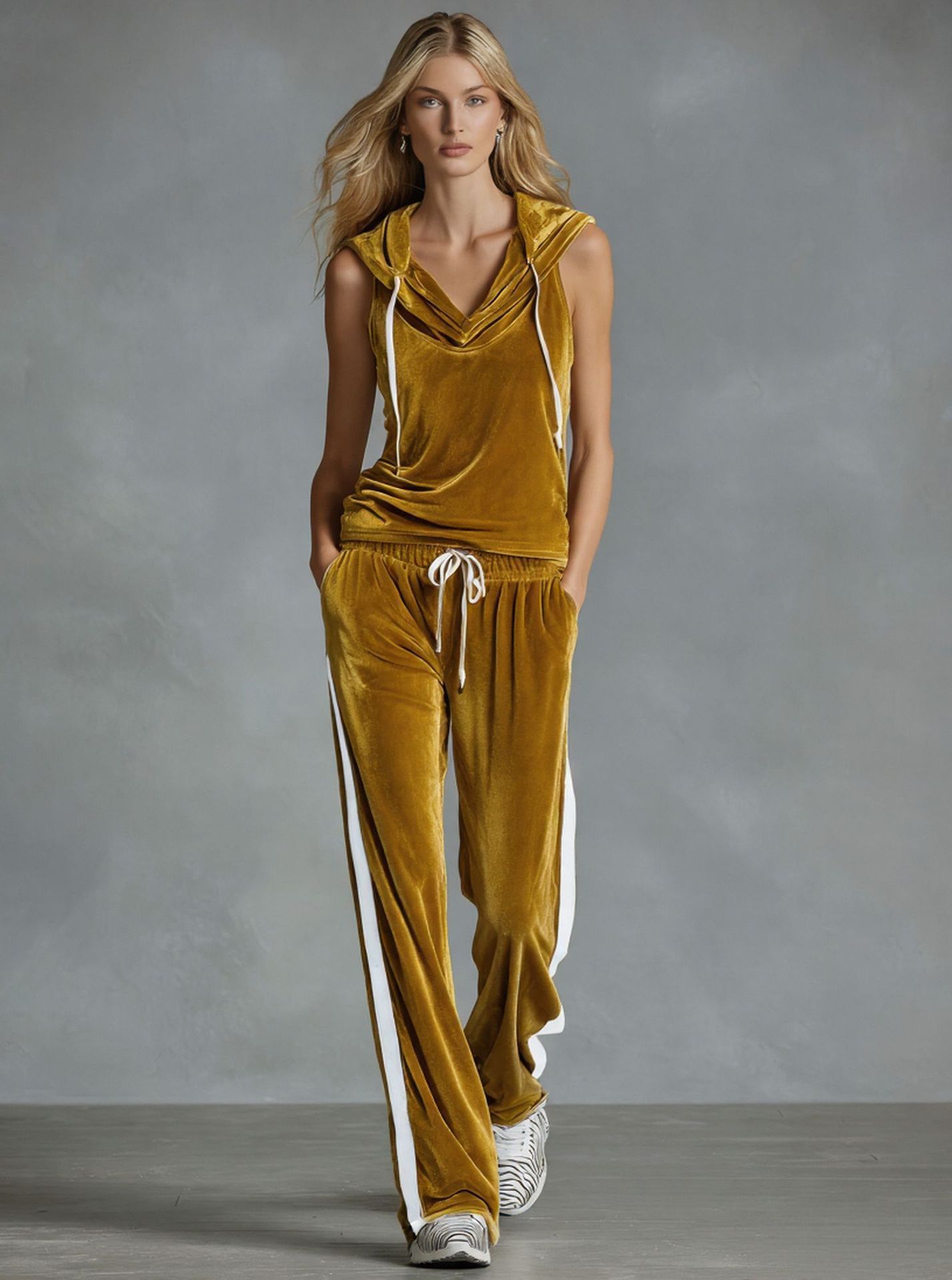 2026欧美跨境外贸套装时尚长裤无袖运动休闲舒适连帽金丝绒两件套