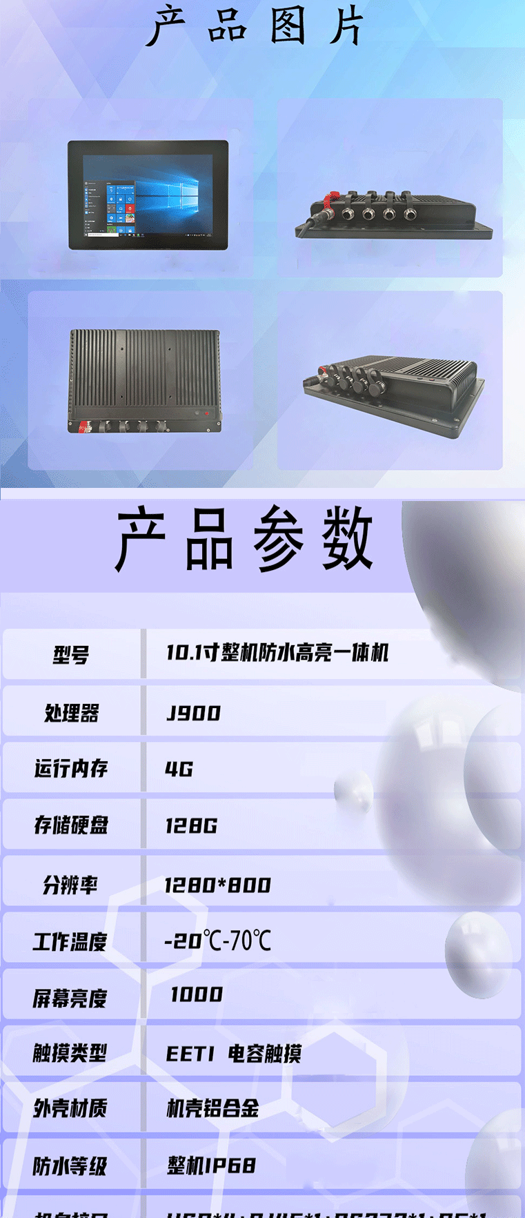 一体机10.1寸整机IP68防水电容触摸屏铝合金壁挂多媒体触控终端机