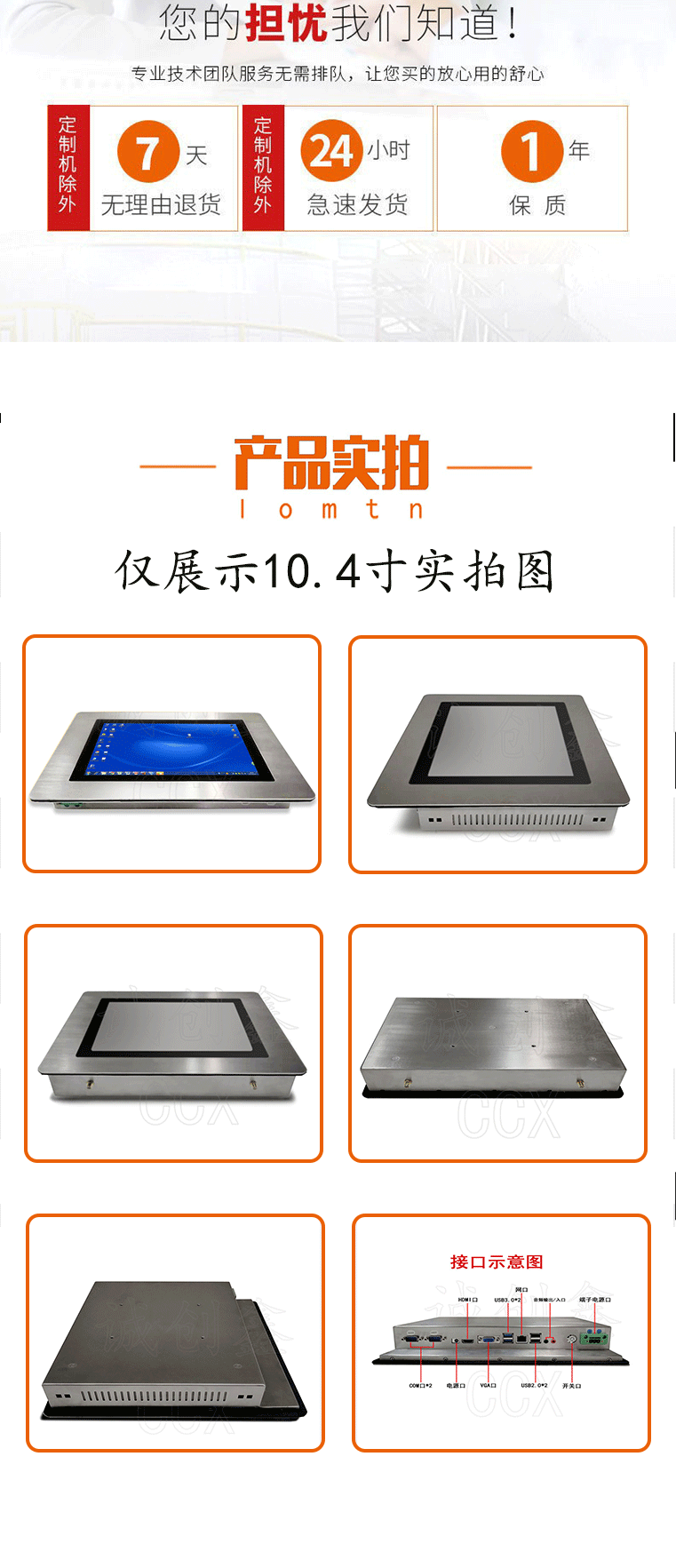 10.4寸工控一体机不锈钢壁挂嵌入工控平板电脑防水电阻触摸工业屏