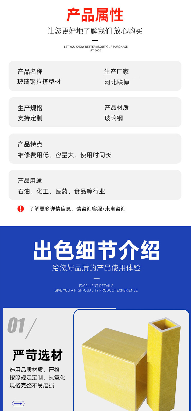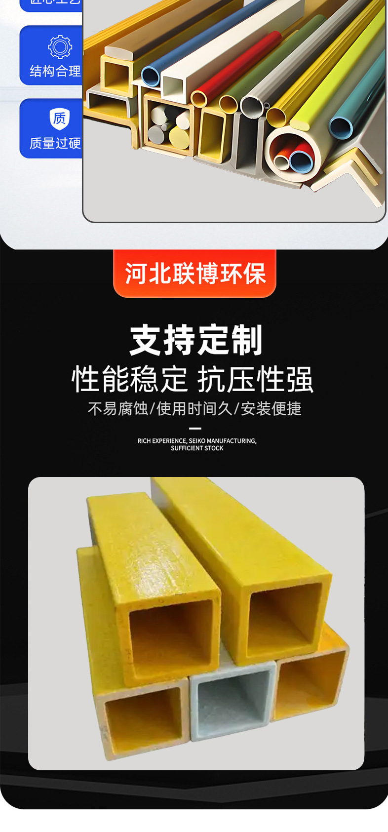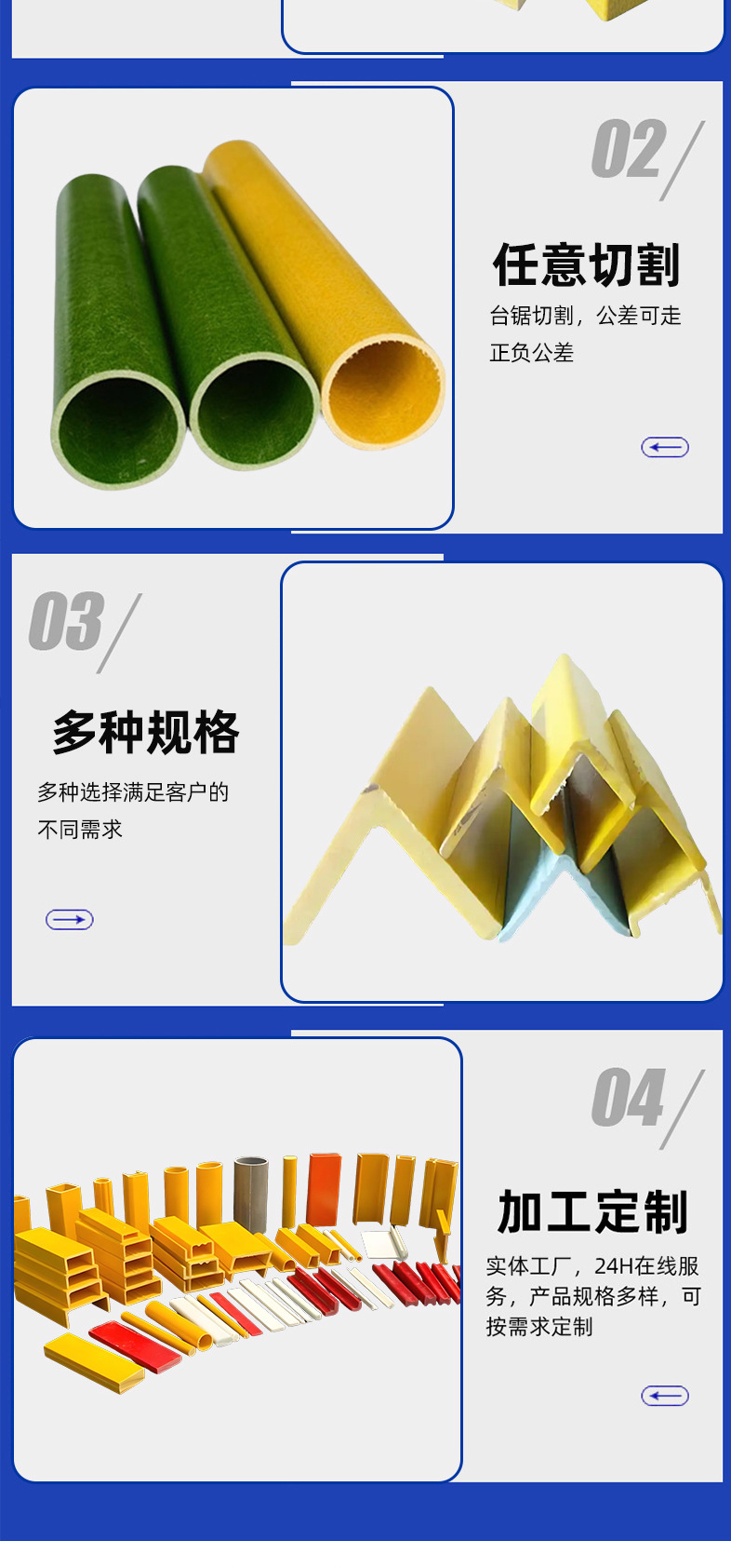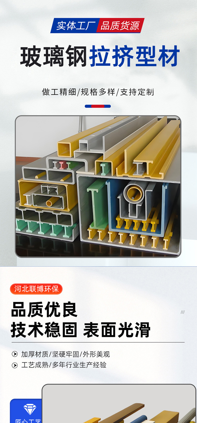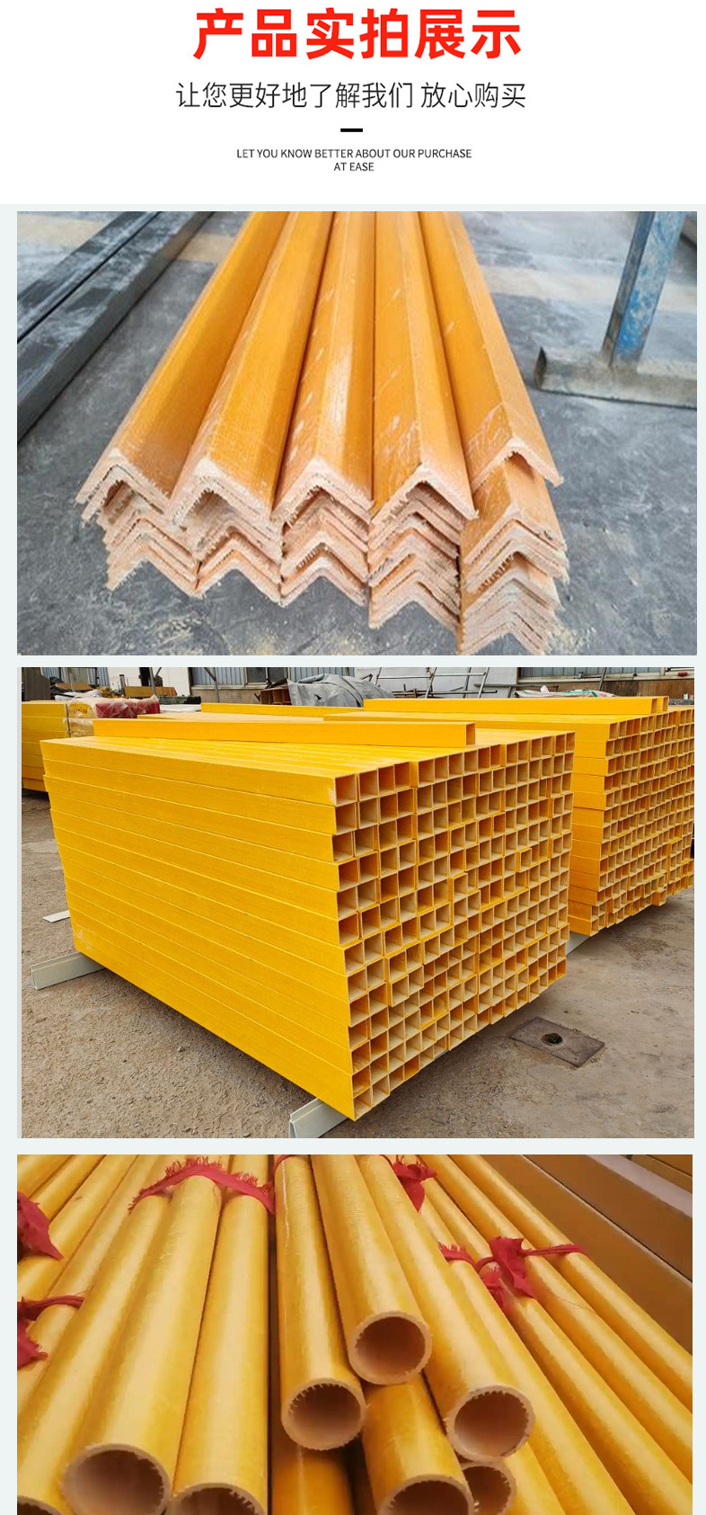 玻璃钢拉挤型材方管圆管扁管角钢槽钢工字钢日字管檩条异型管