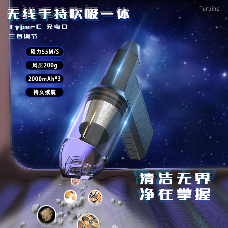 跨境爆款高速无刷暴力涡轮风扇便携式手持无线车载吸尘器