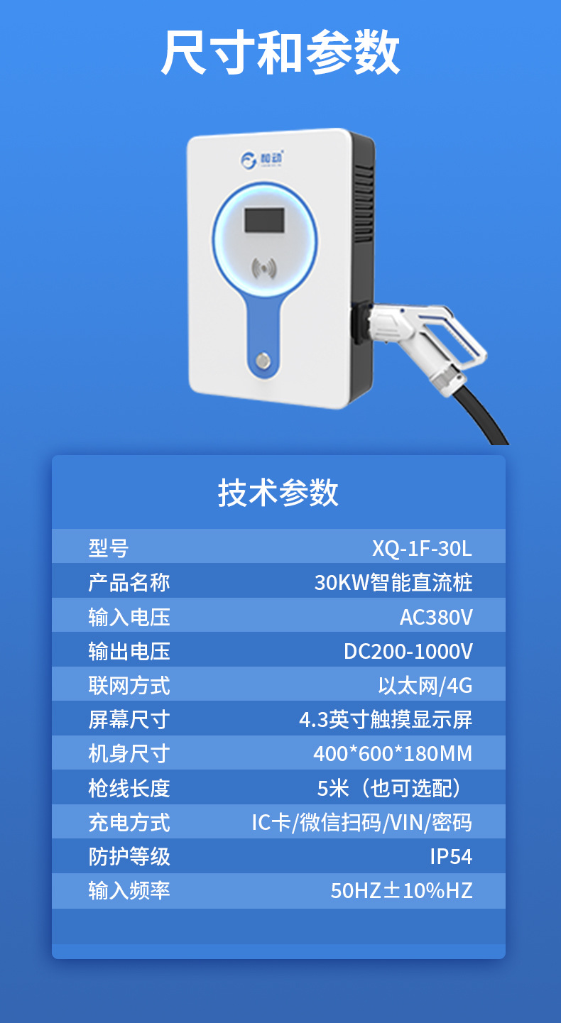 30KW壁挂即插即充刷卡小程序启动充电桩家用商用直流电大功率快充