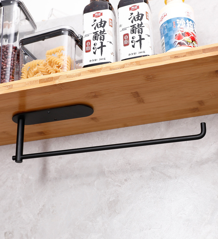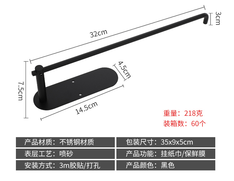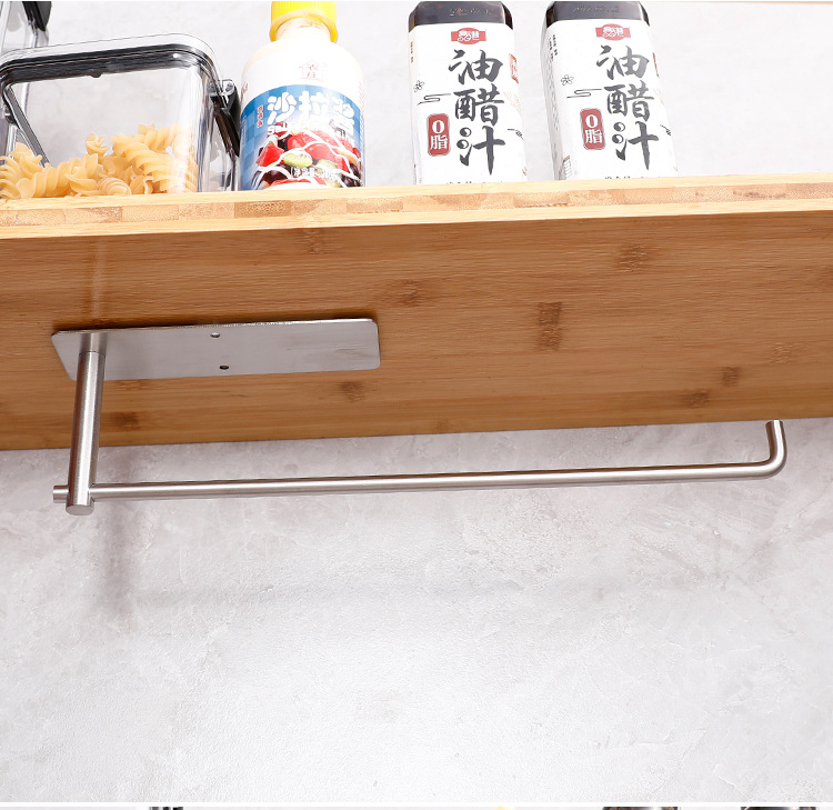 不锈钢厨房纸巾架免打孔保鲜膜架挂壁式卷纸架毛巾架抹布挂杆
