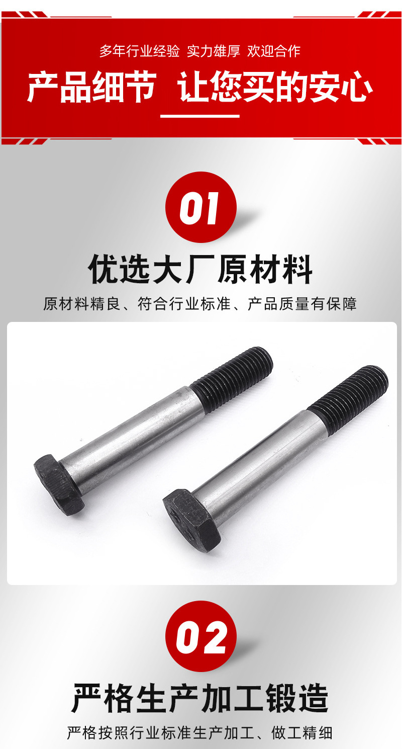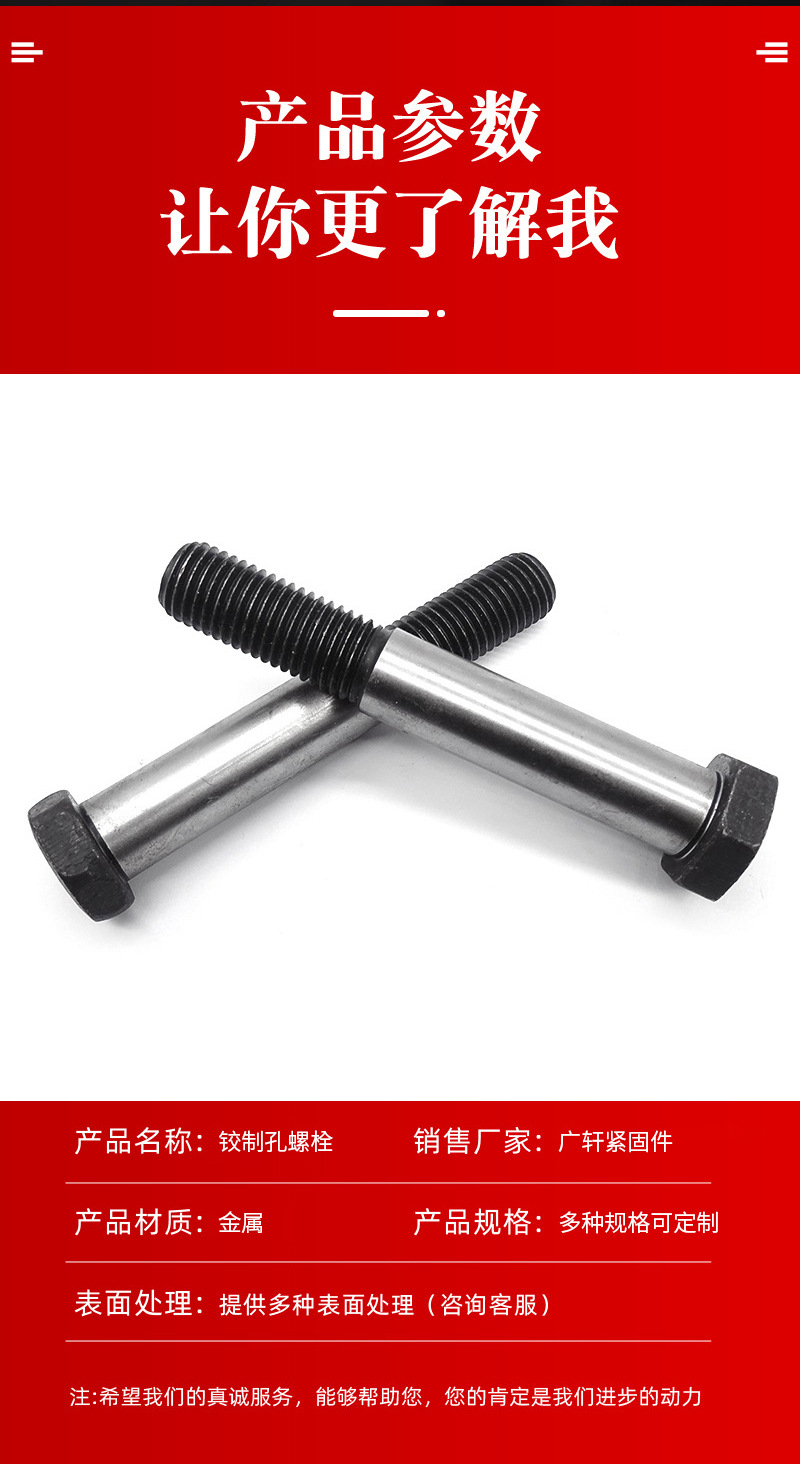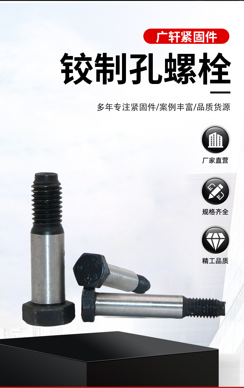 铰制孔螺栓六角头螺栓五金金属碳钢发黑螺杆现货固定螺丝配件工具