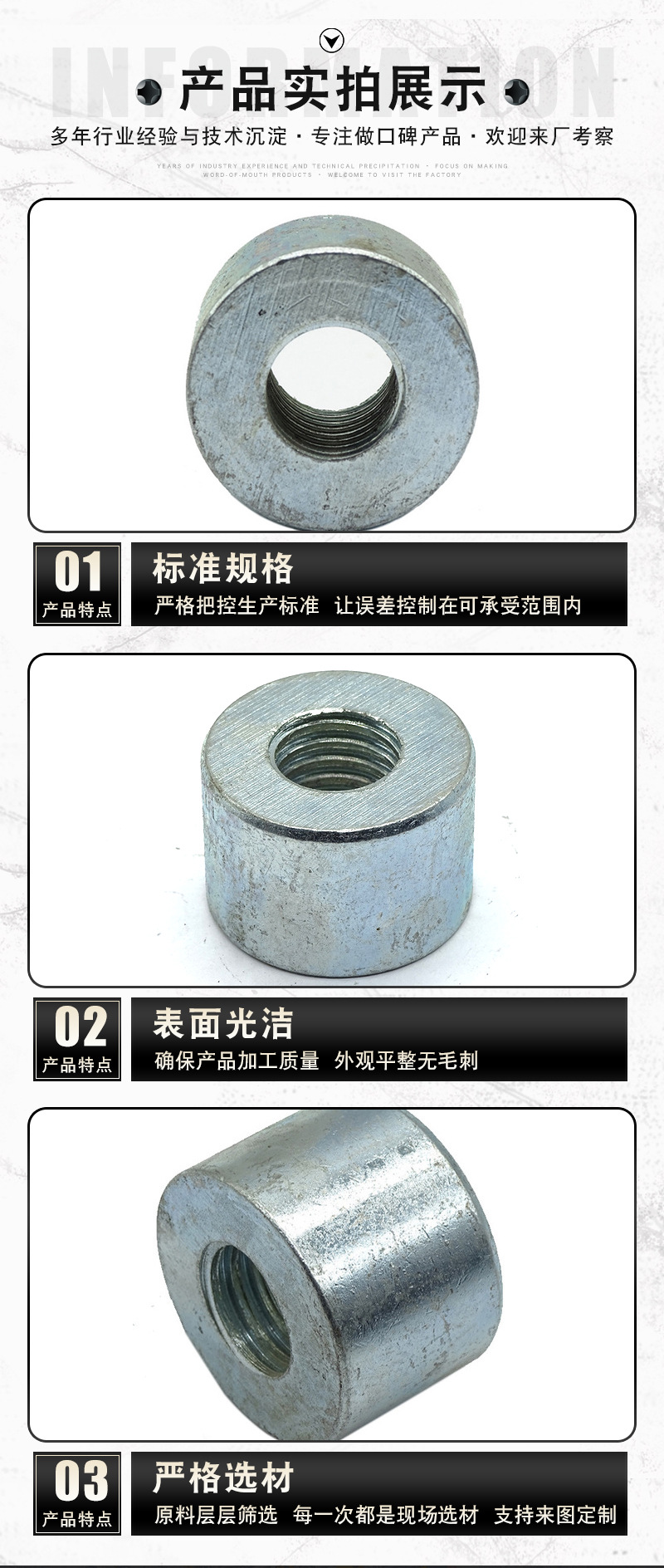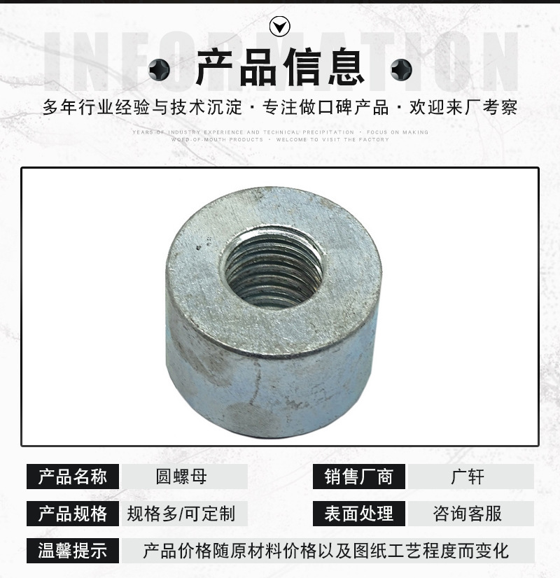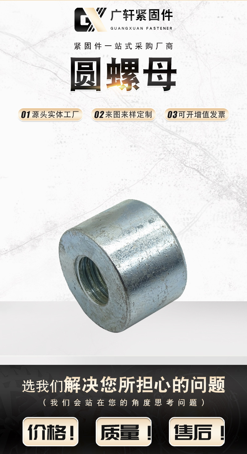 圆螺母圆柱螺母连接焊接螺帽内牙螺纹支撑工具隔离柱不锈钢圆螺母
