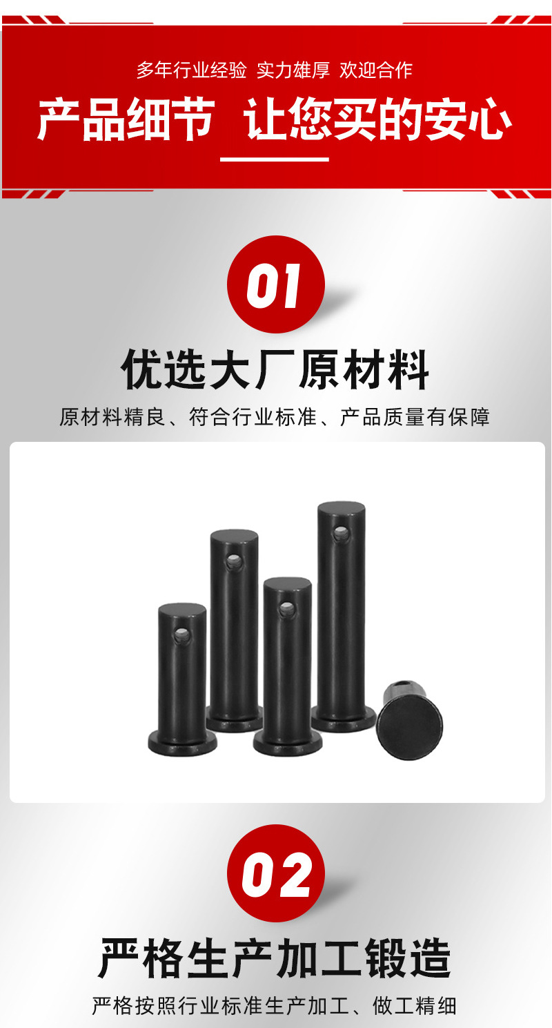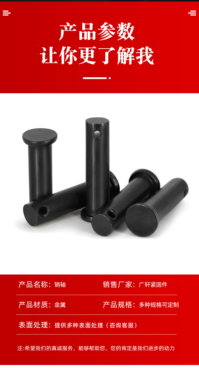 定制平头销轴穿孔销定位销发黑矿用插销金属圆柱销螺丝工具配件