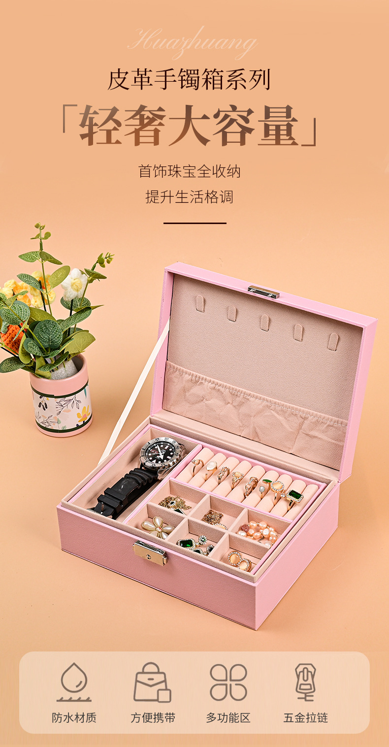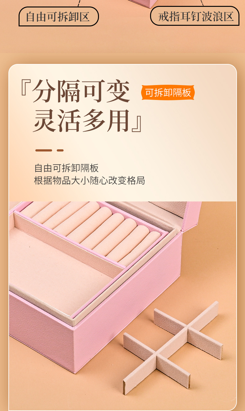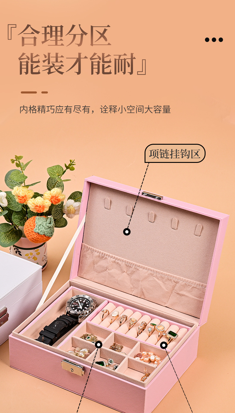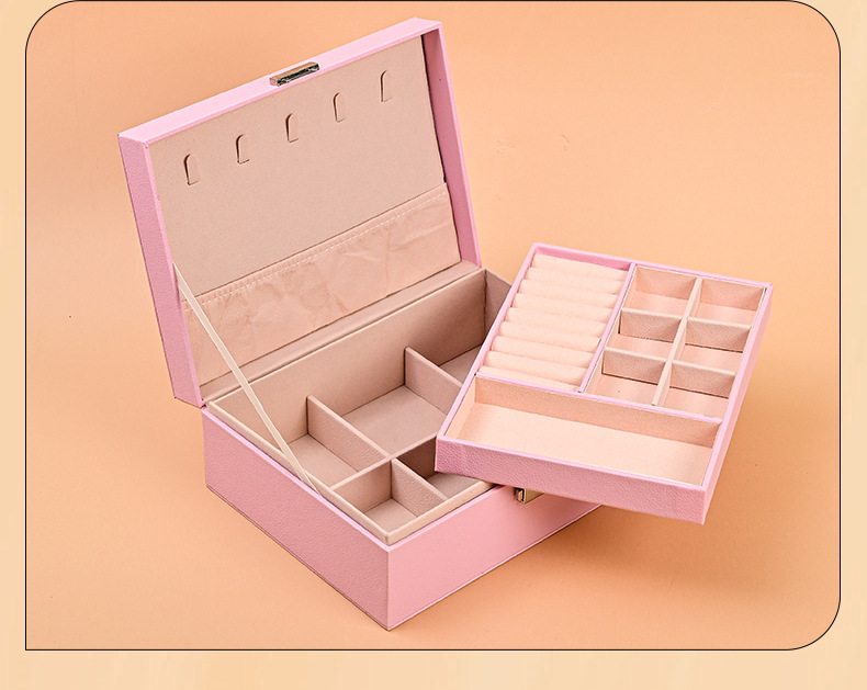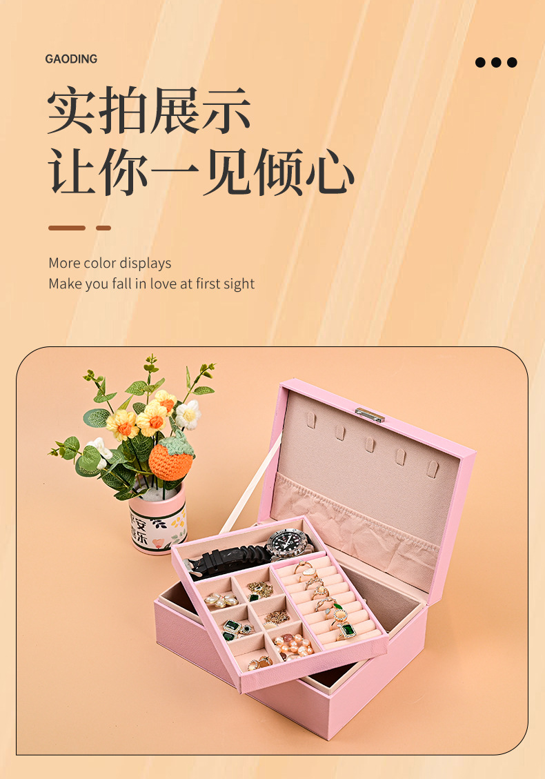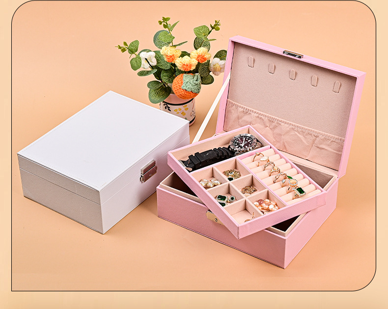 定制批发大容量双层珠宝首饰盒戒指项链吊坠礼物礼品饰