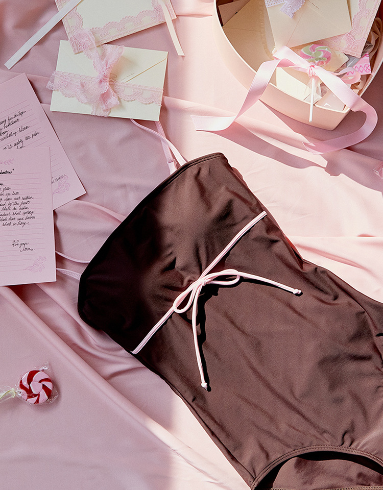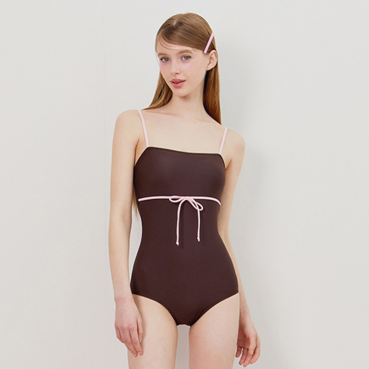 紧身连体泳衣女吊带系绳性感比基尼拼色抹胸欧美跨境海边比基尼女