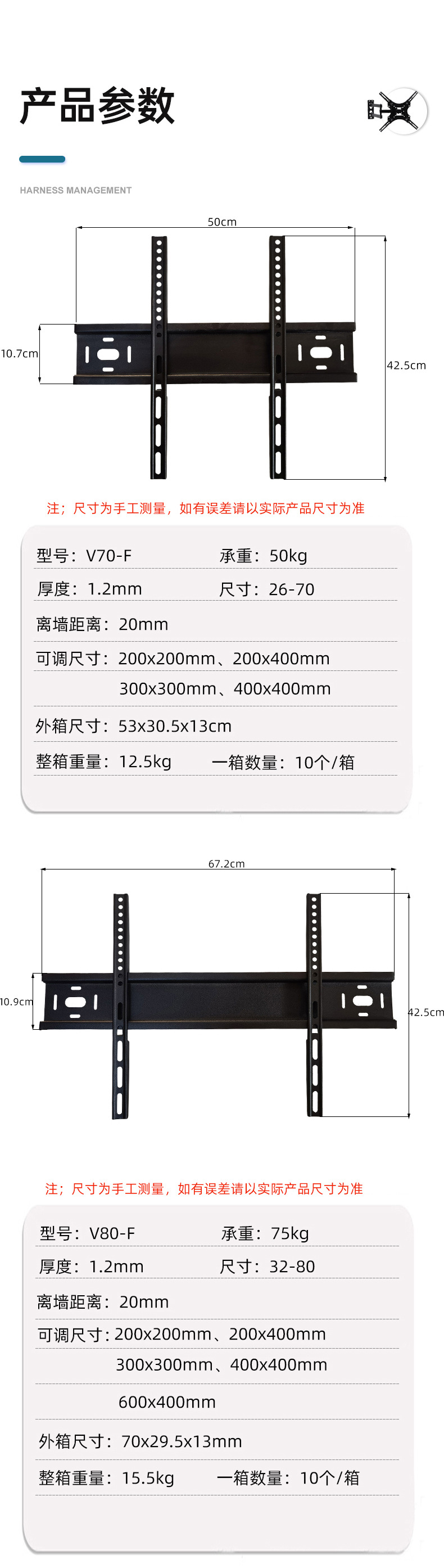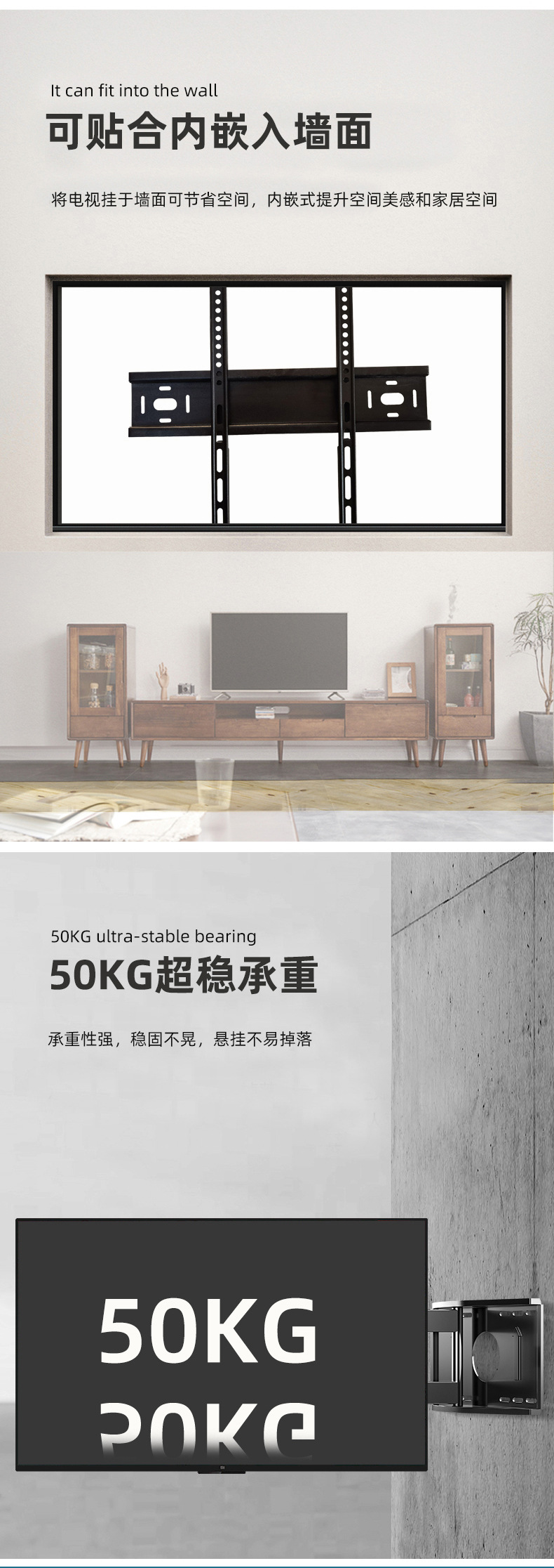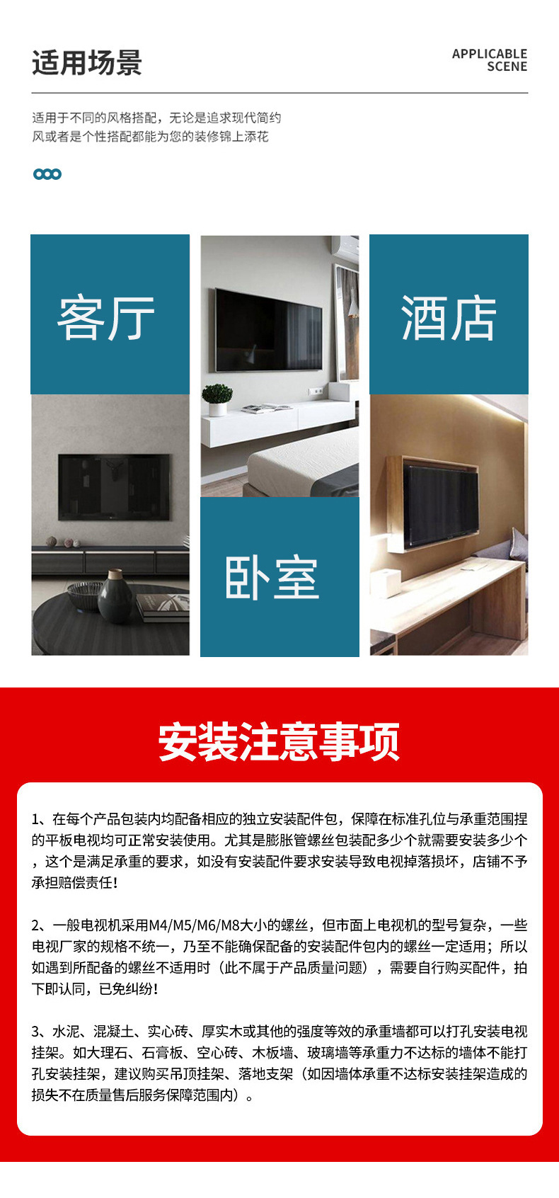 固定式液晶电视挂架42-90寸固定壁挂支架显示屏上下可调挂架