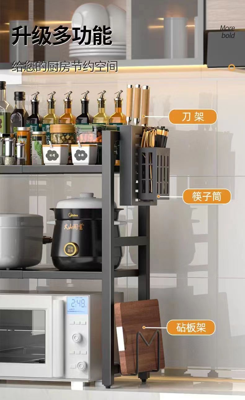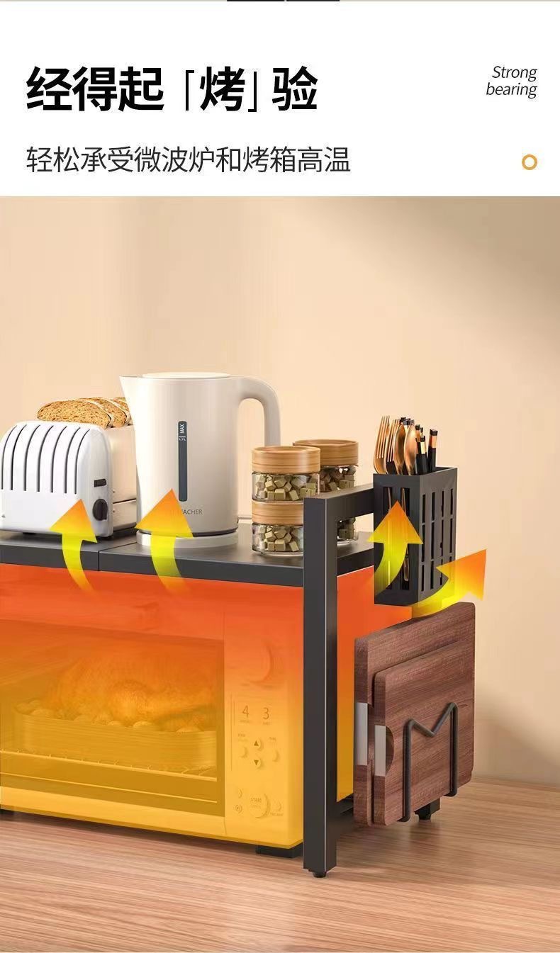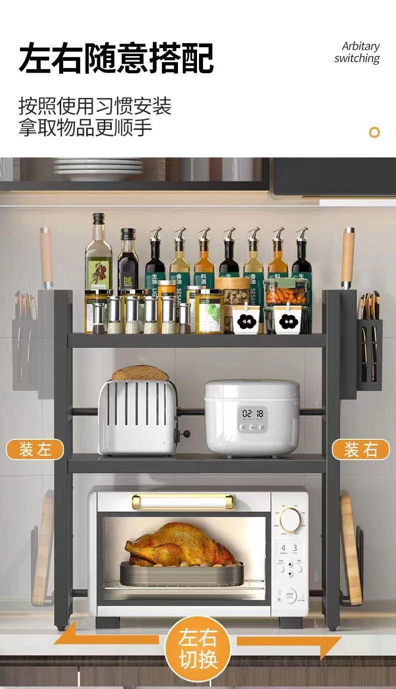 加工定制单双层厨房储物架可调节宽度桌面收纳架子免打孔烤箱微波