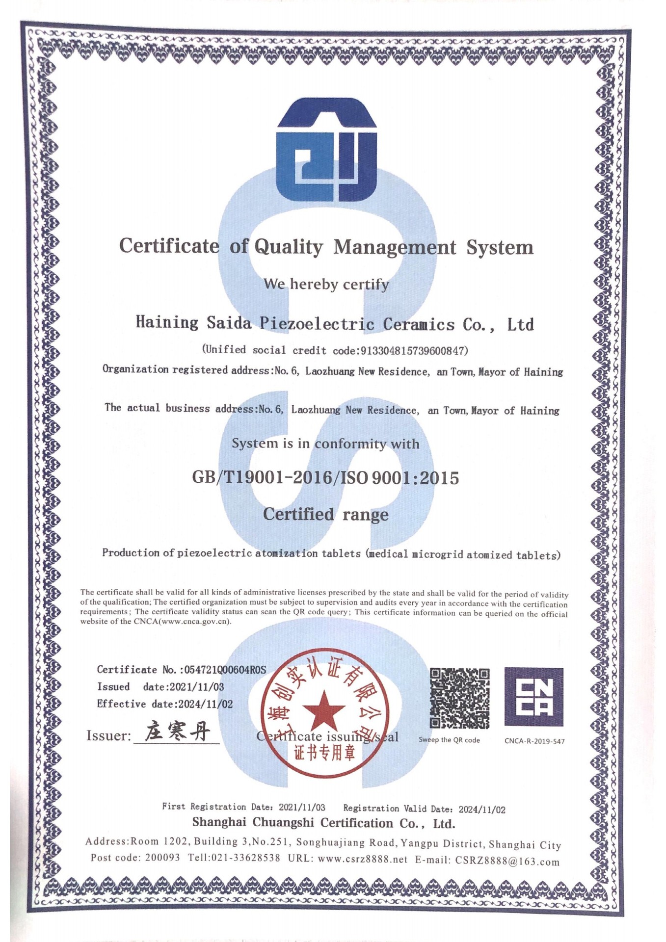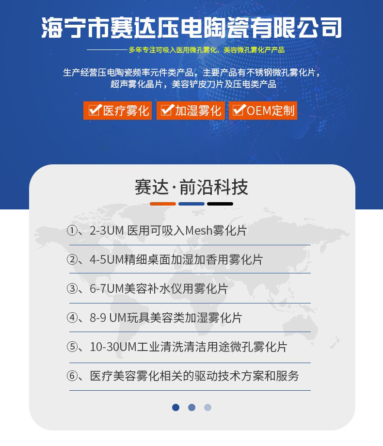 赛达SD专业生产雾化片压电陶瓷微网雾化片加湿器香薰机补水雾化片