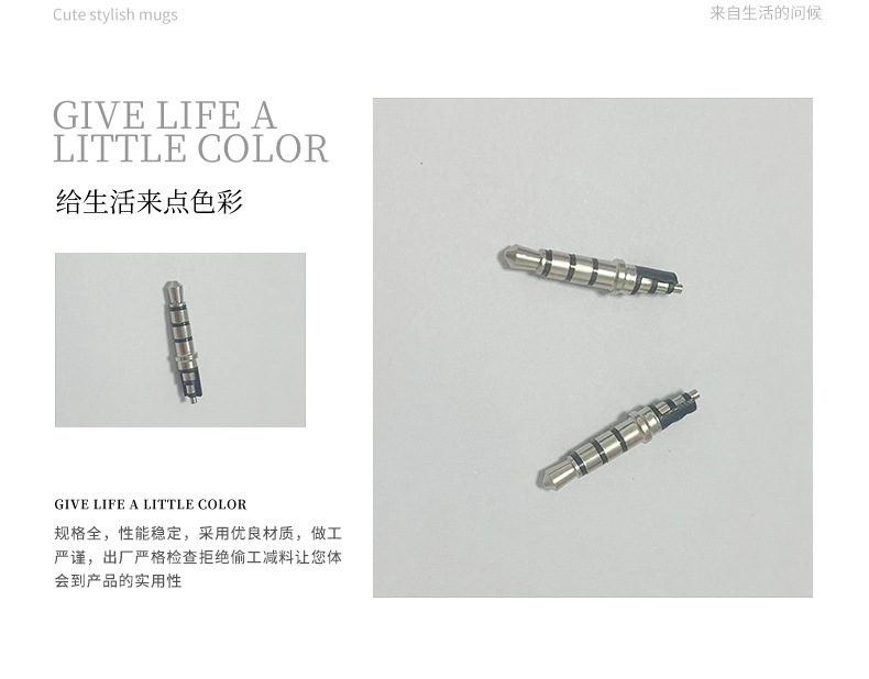 耳机套音频耳机插针3.5*4.5*23.5四极镀镍黑胶冲件B螺旋保护针头
