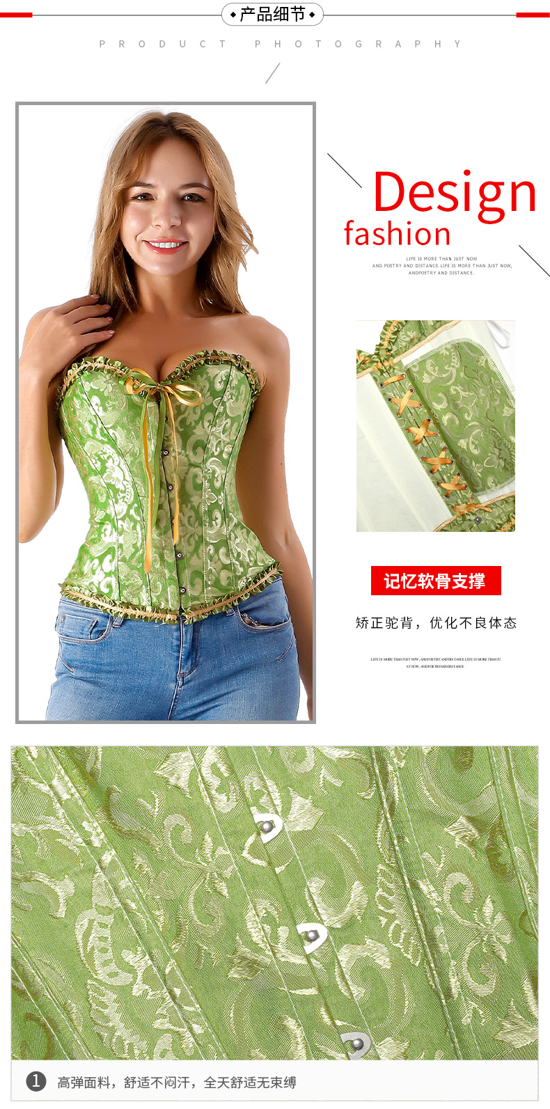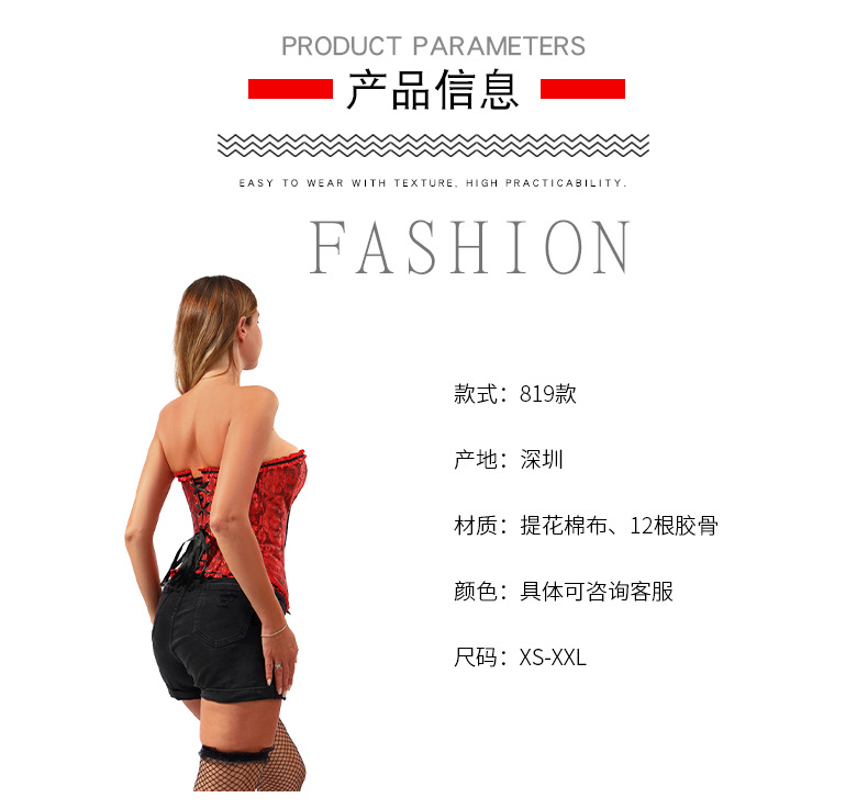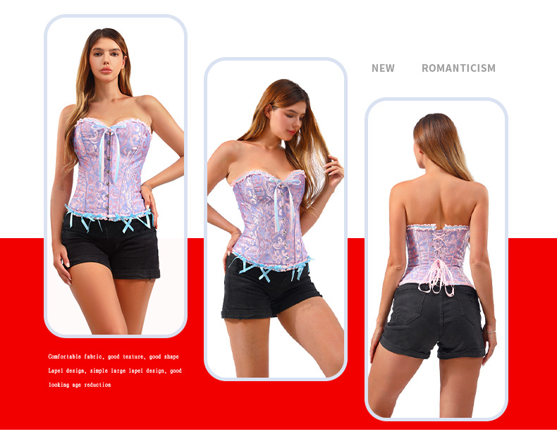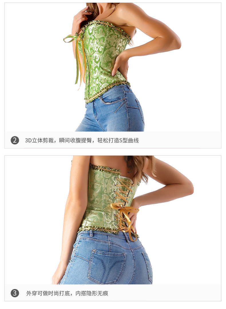 跨境直供及腹收腰南美宫廷有花边束身衣收腹带女托胸聚拢塑身衣