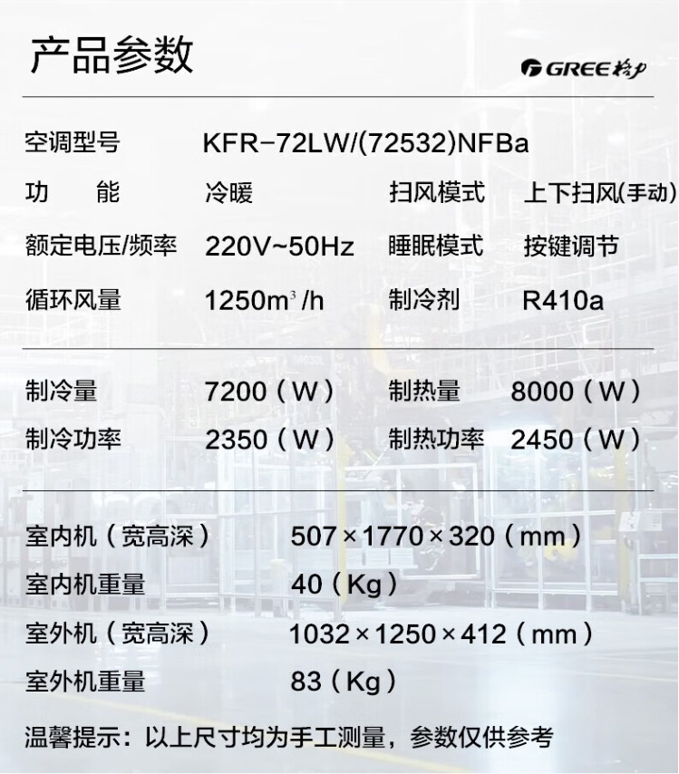- 外机尺寸(宽x高x深)mm:宽1032mm;高840mm;深412mm