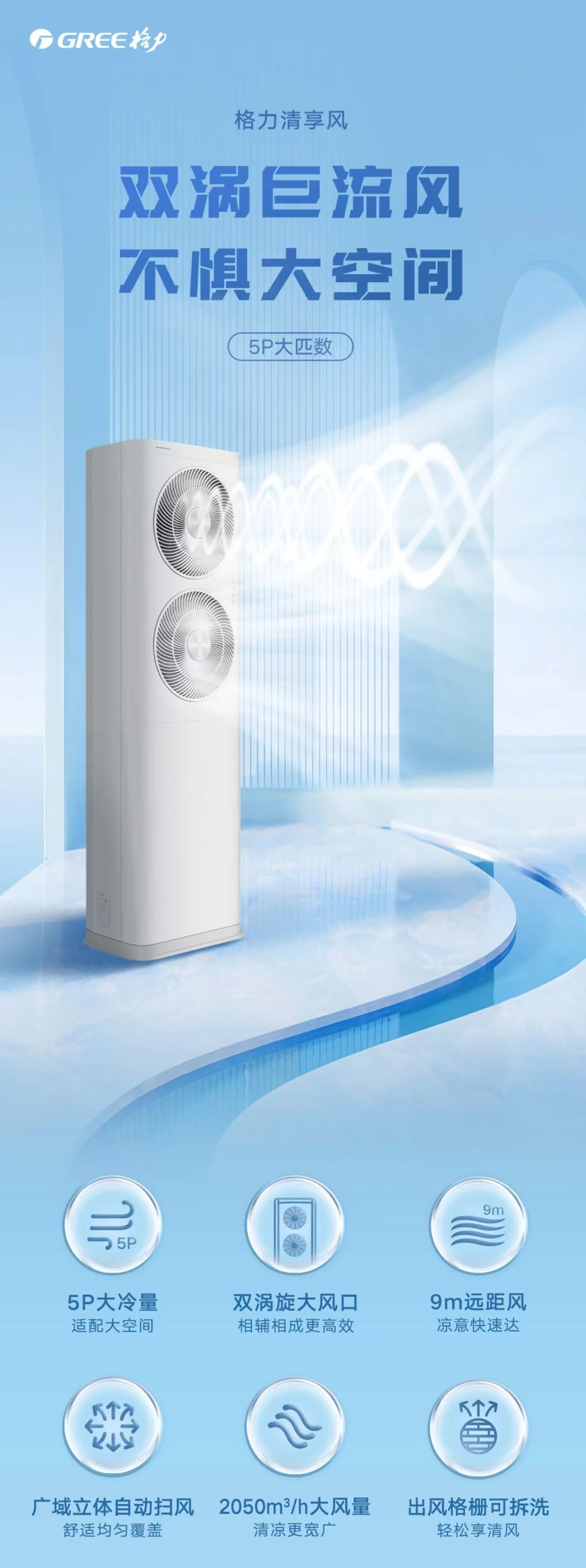 格力(GREE)【新品现货】清享风5匹2级能效380V变频冷暖 柜式空调